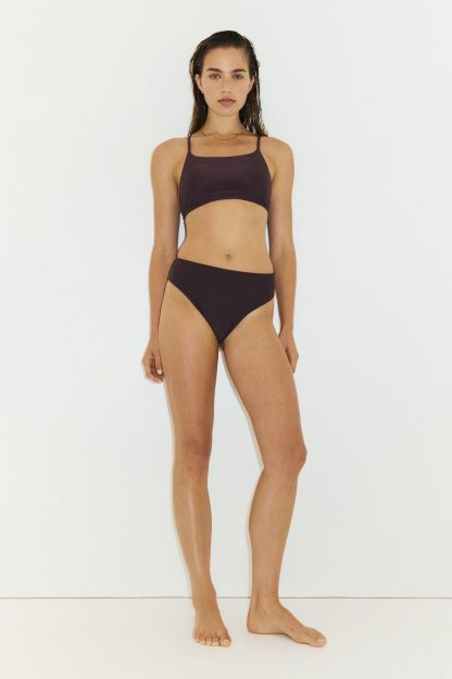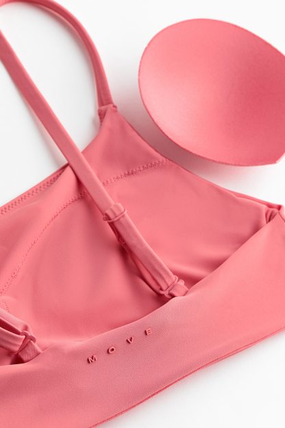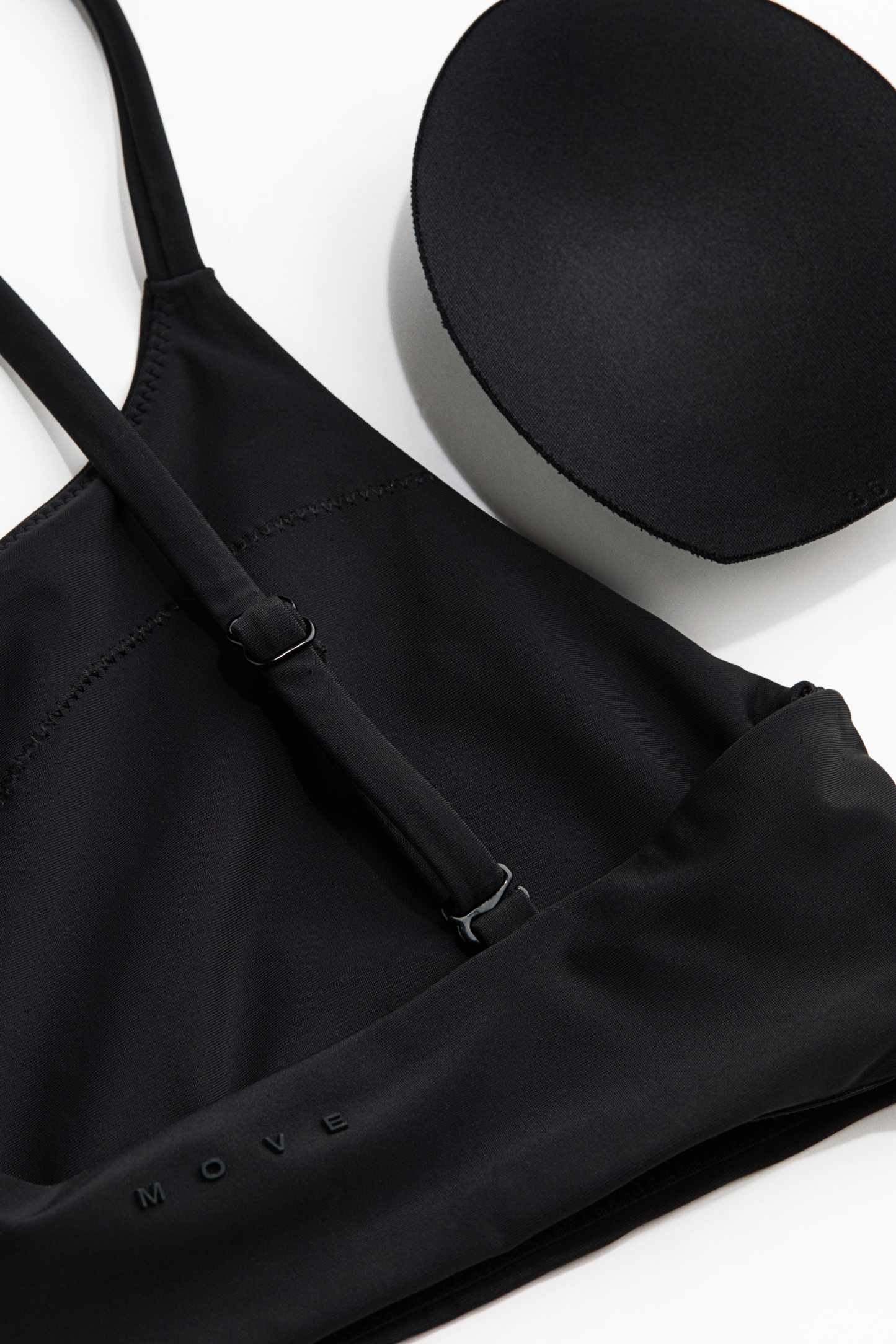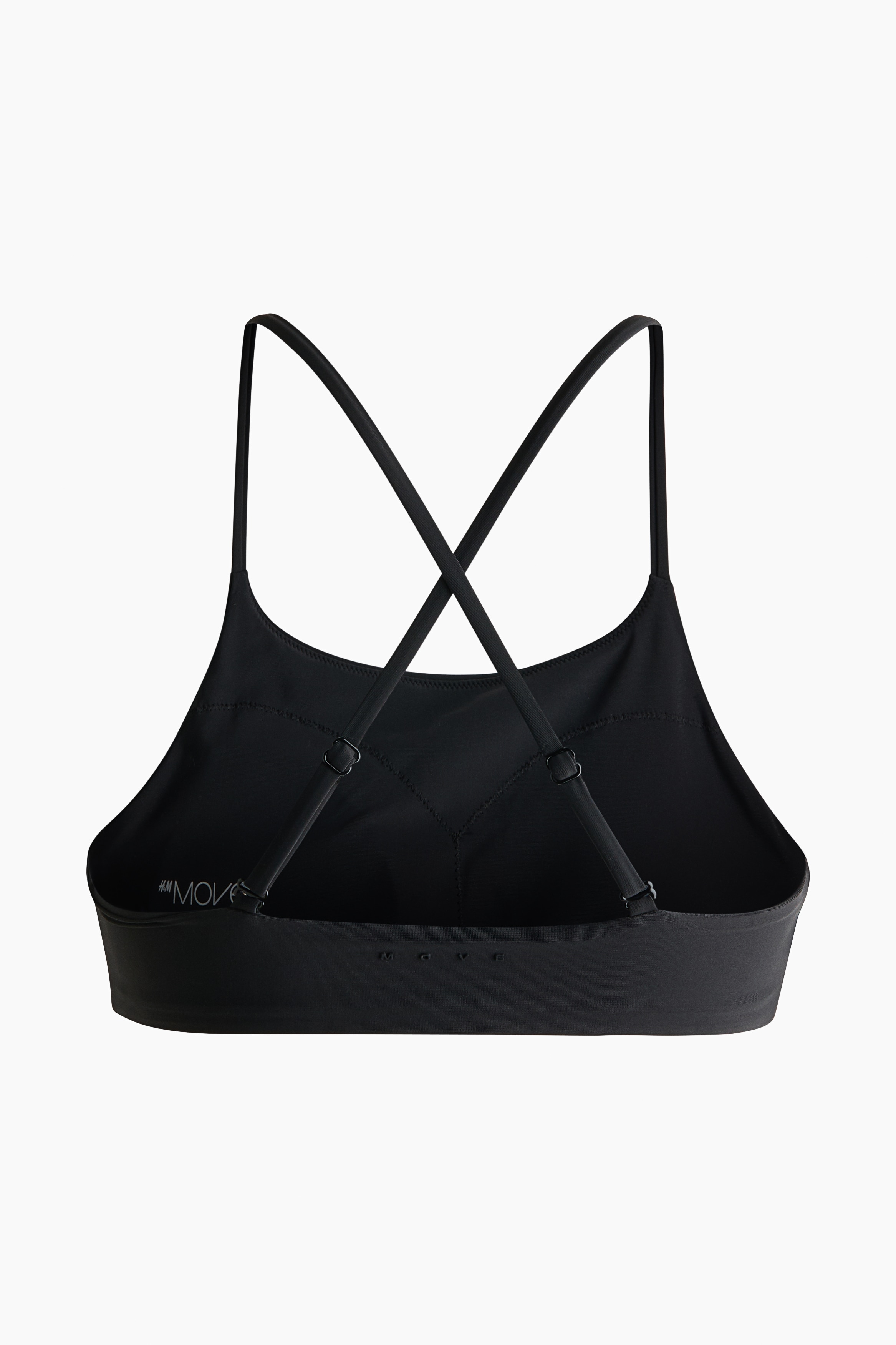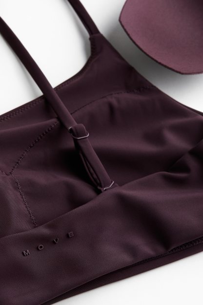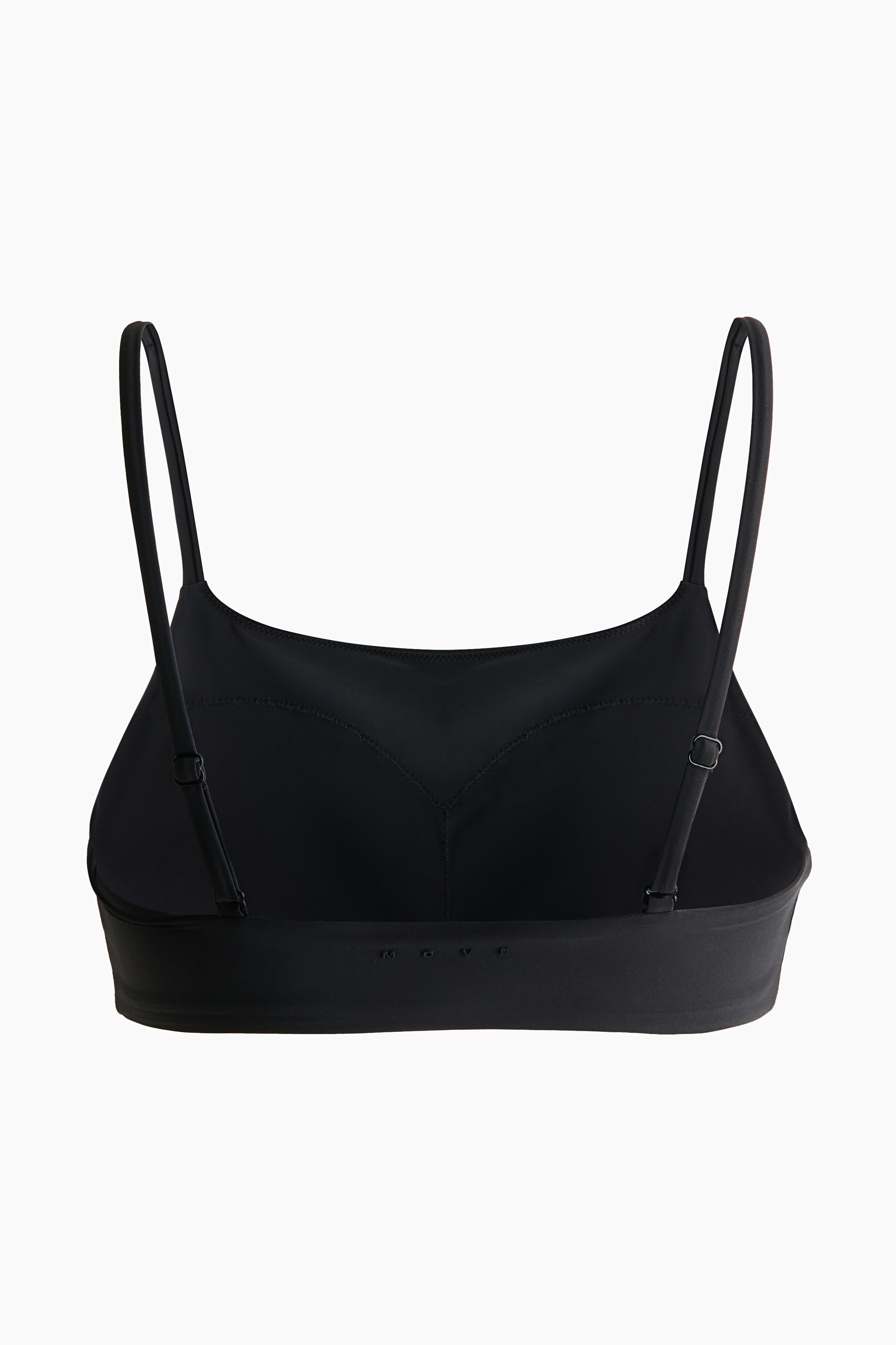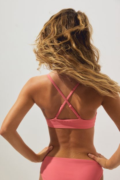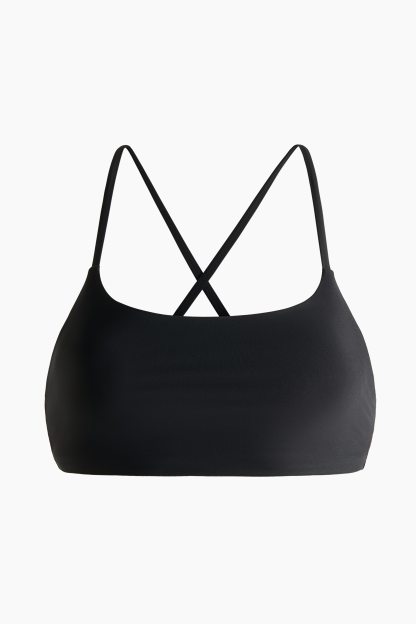 Fully lined bikini top ideal for water sports and swimming. Features narrow, adjustable shoulder straps that can be worn crossed or straight. Cups with removable inserts that shape the bust and provide good support.