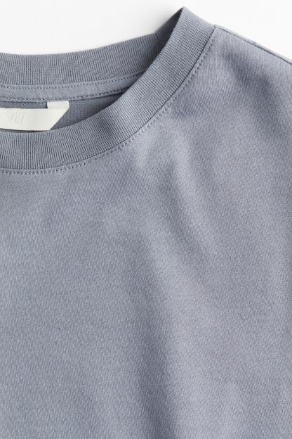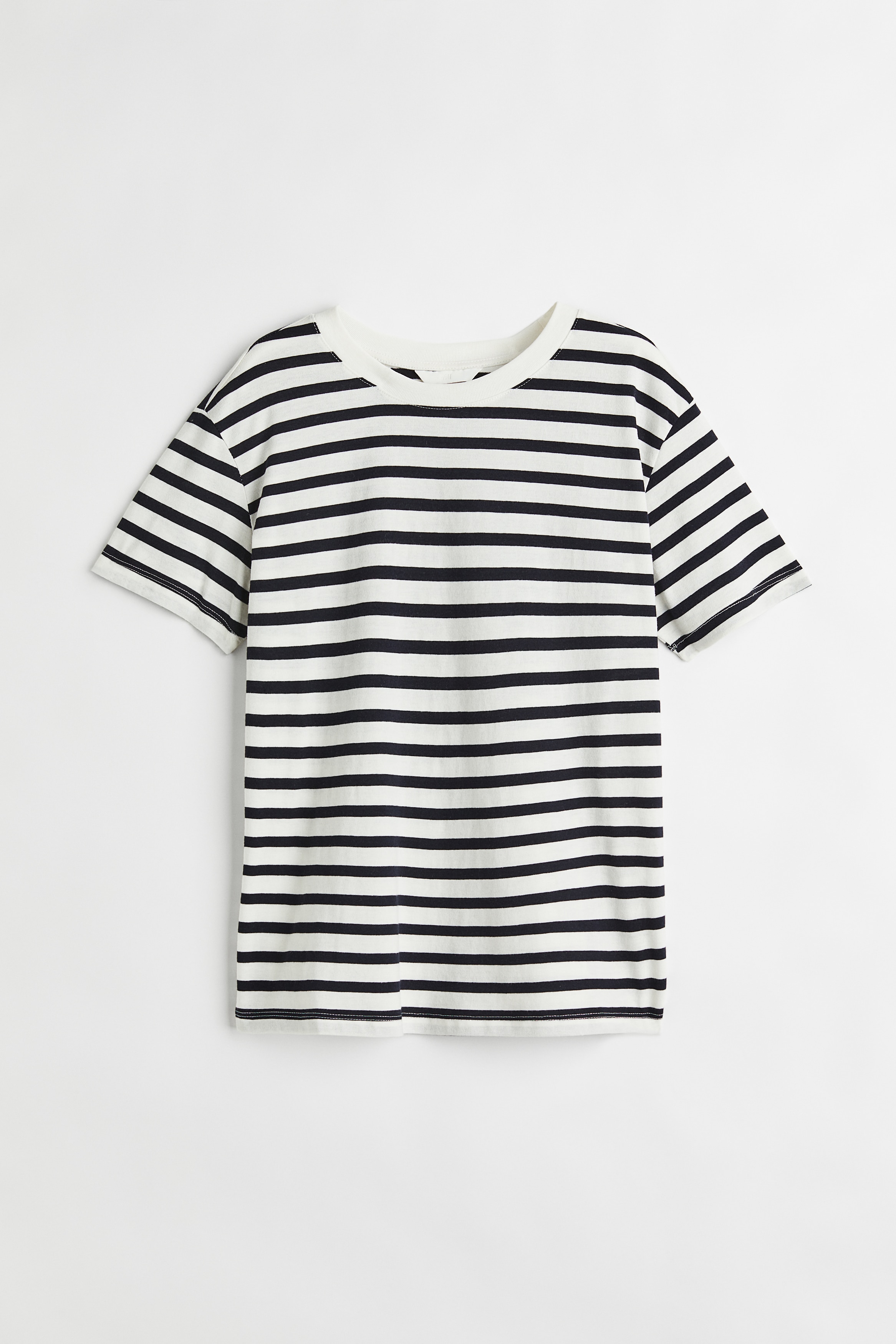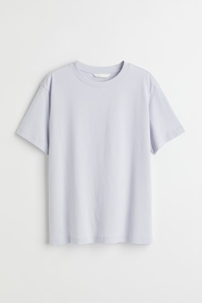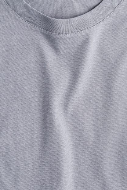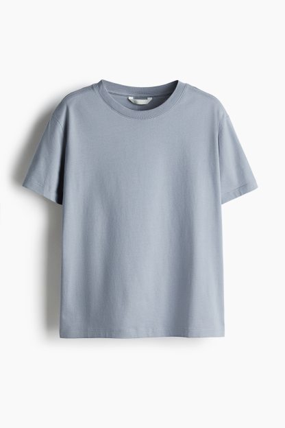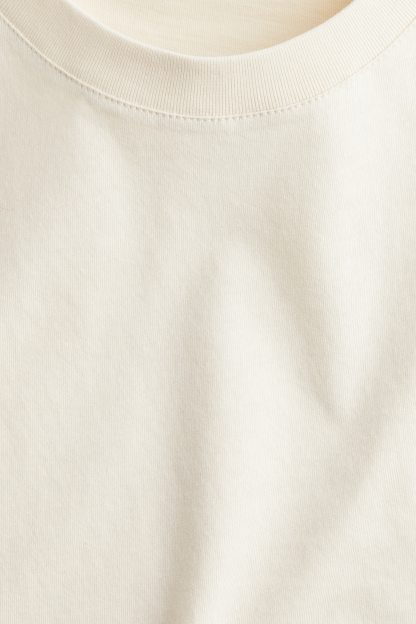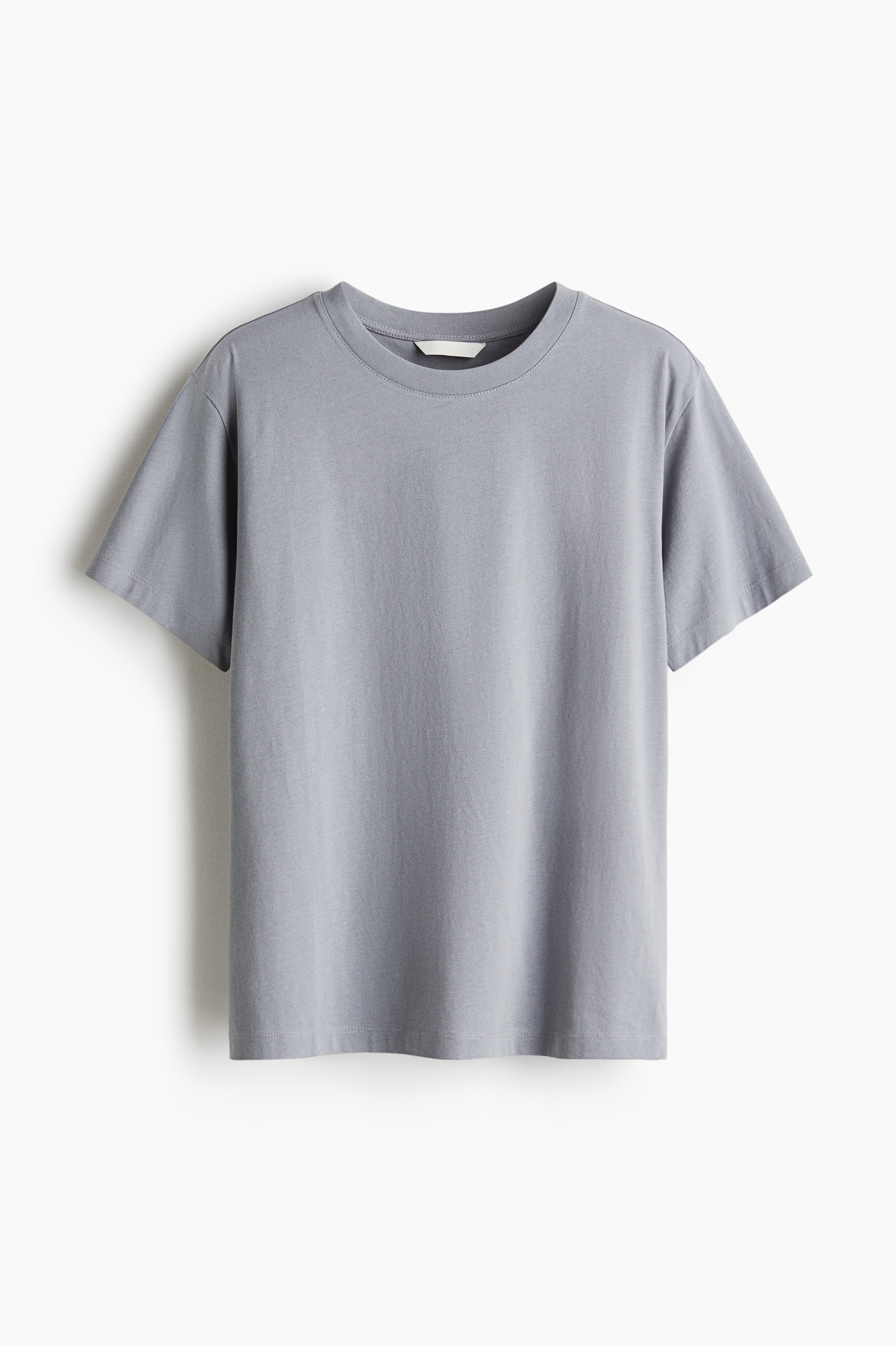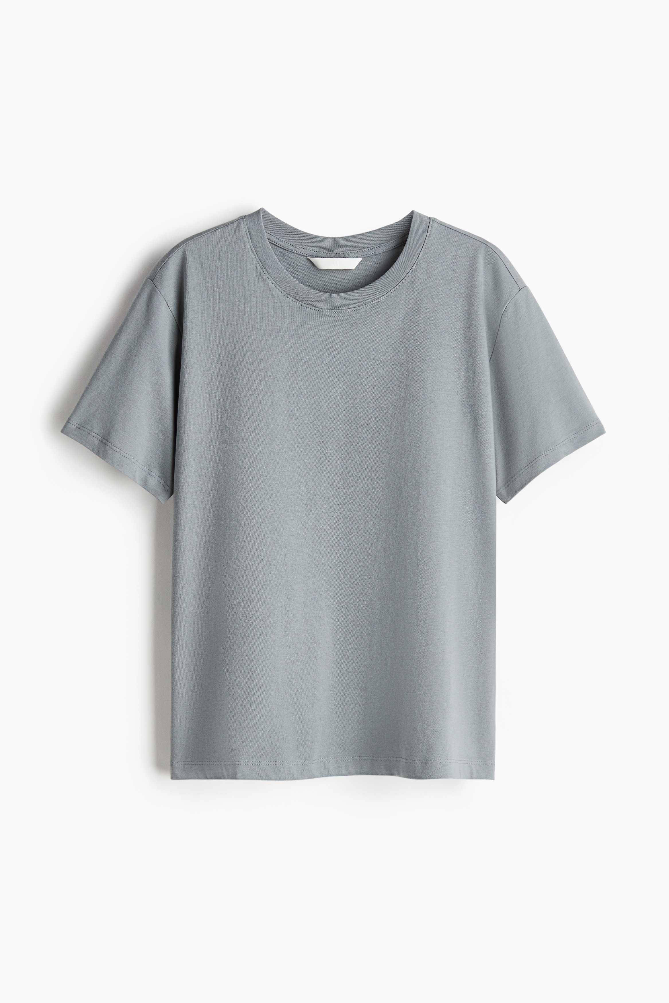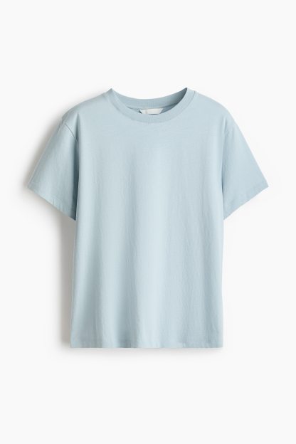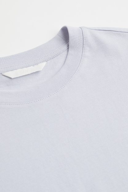 Straight-cut T-shirt in soft cotton jersey with a round, rib-trimmed neckline and gently dropped shoulders.