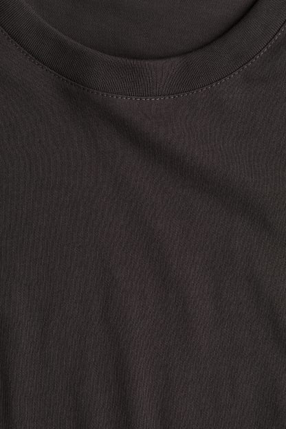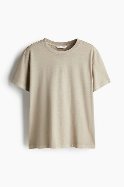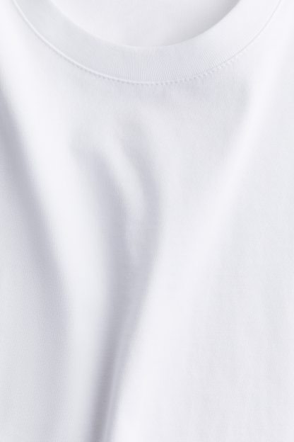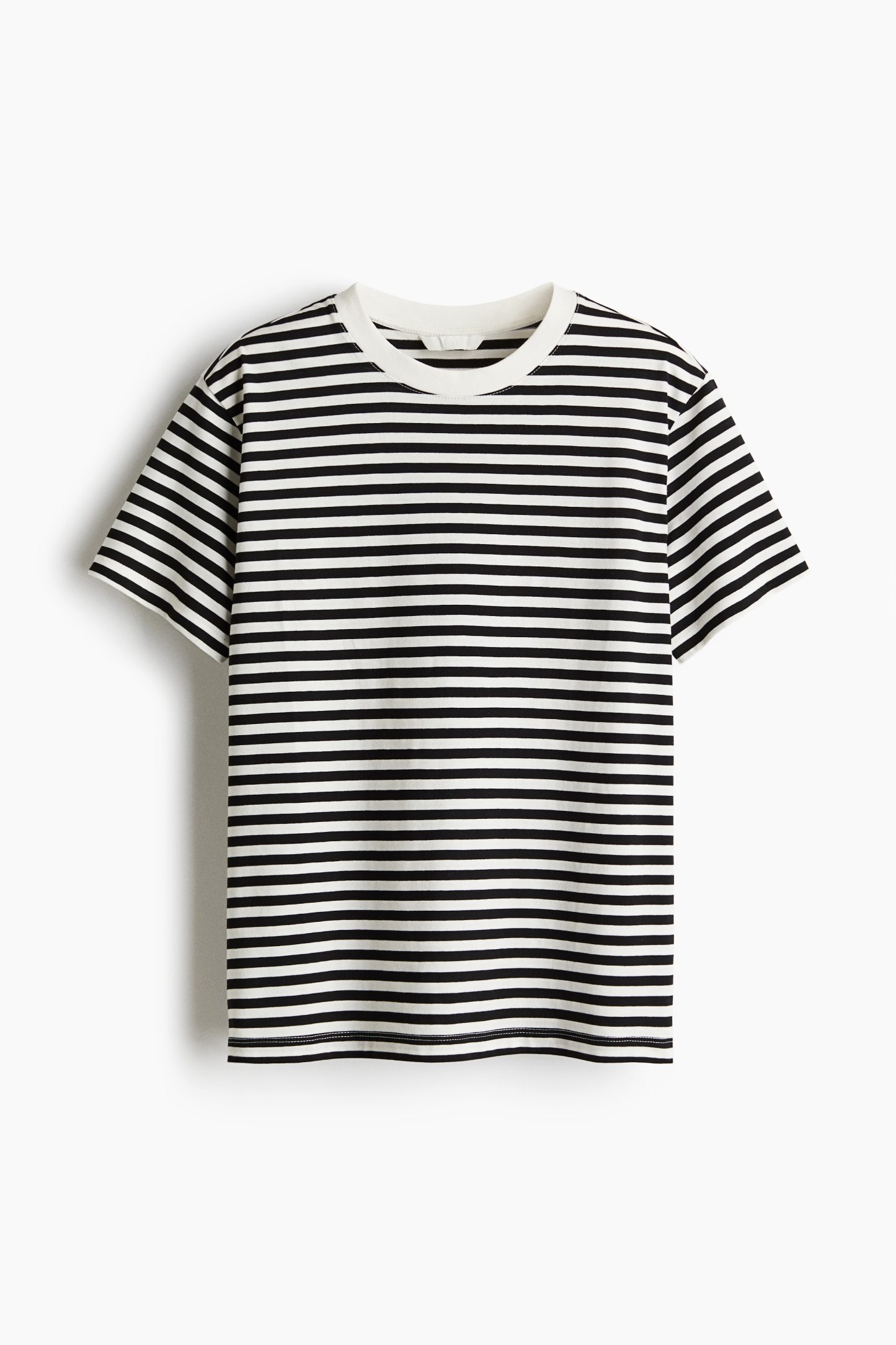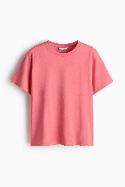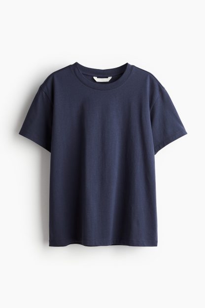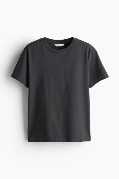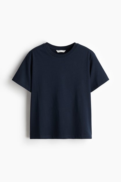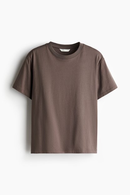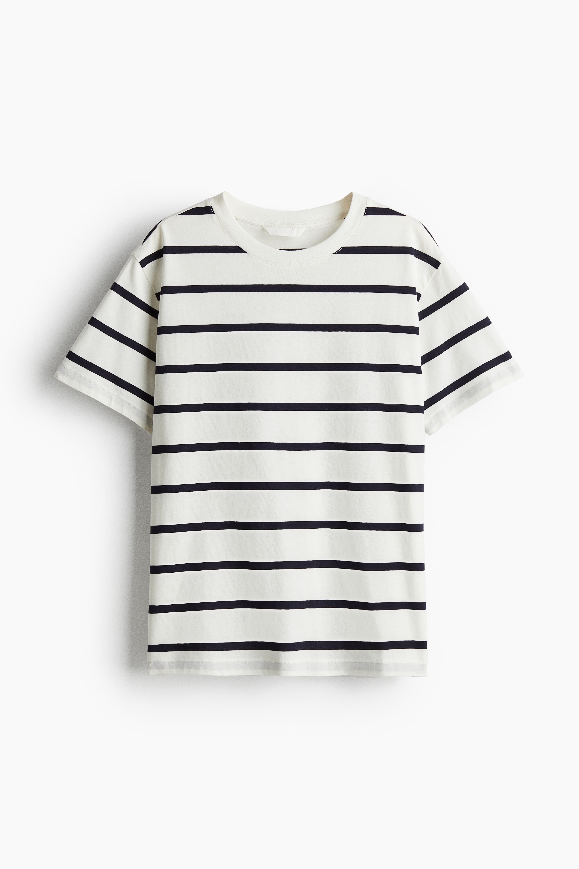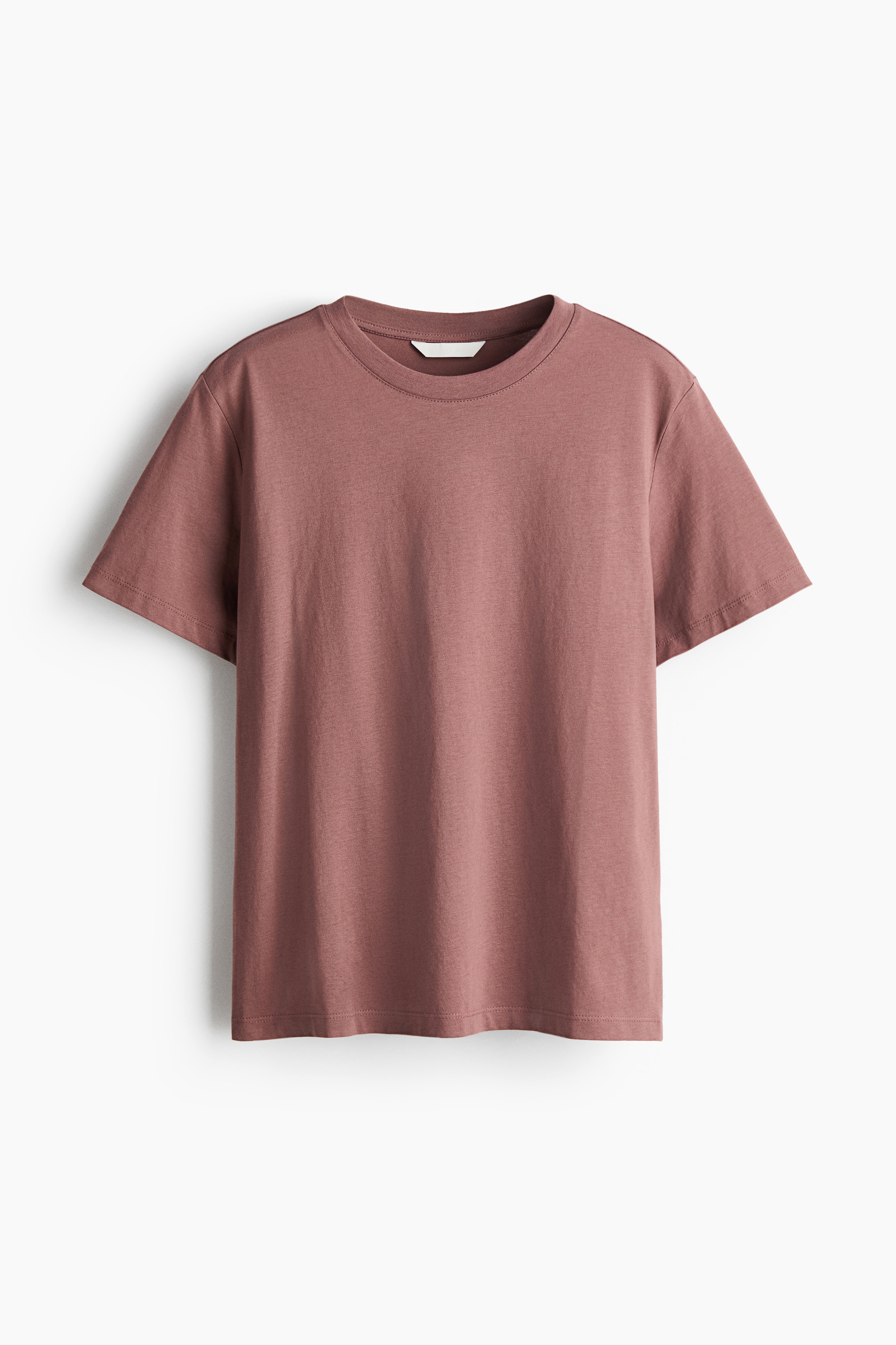 Straight-cut T-shirt in soft cotton jersey with a round, rib-trimmed neckline and gently dropped shoulders.