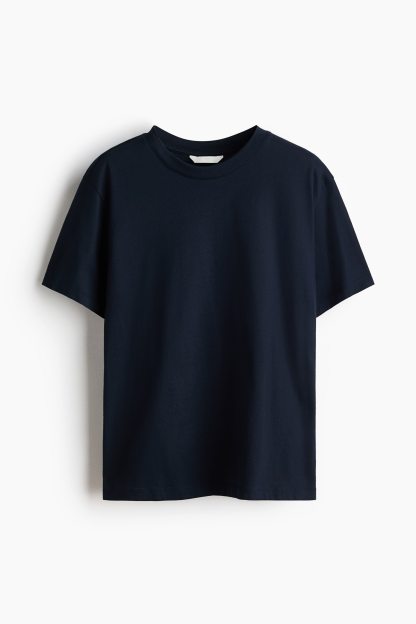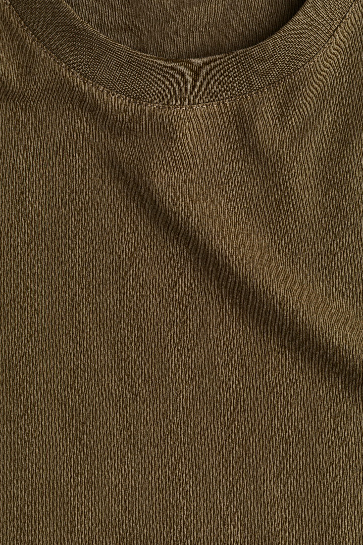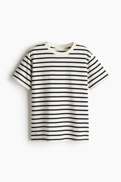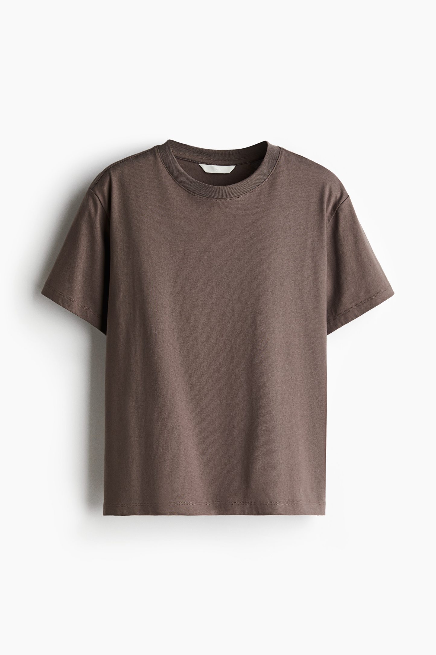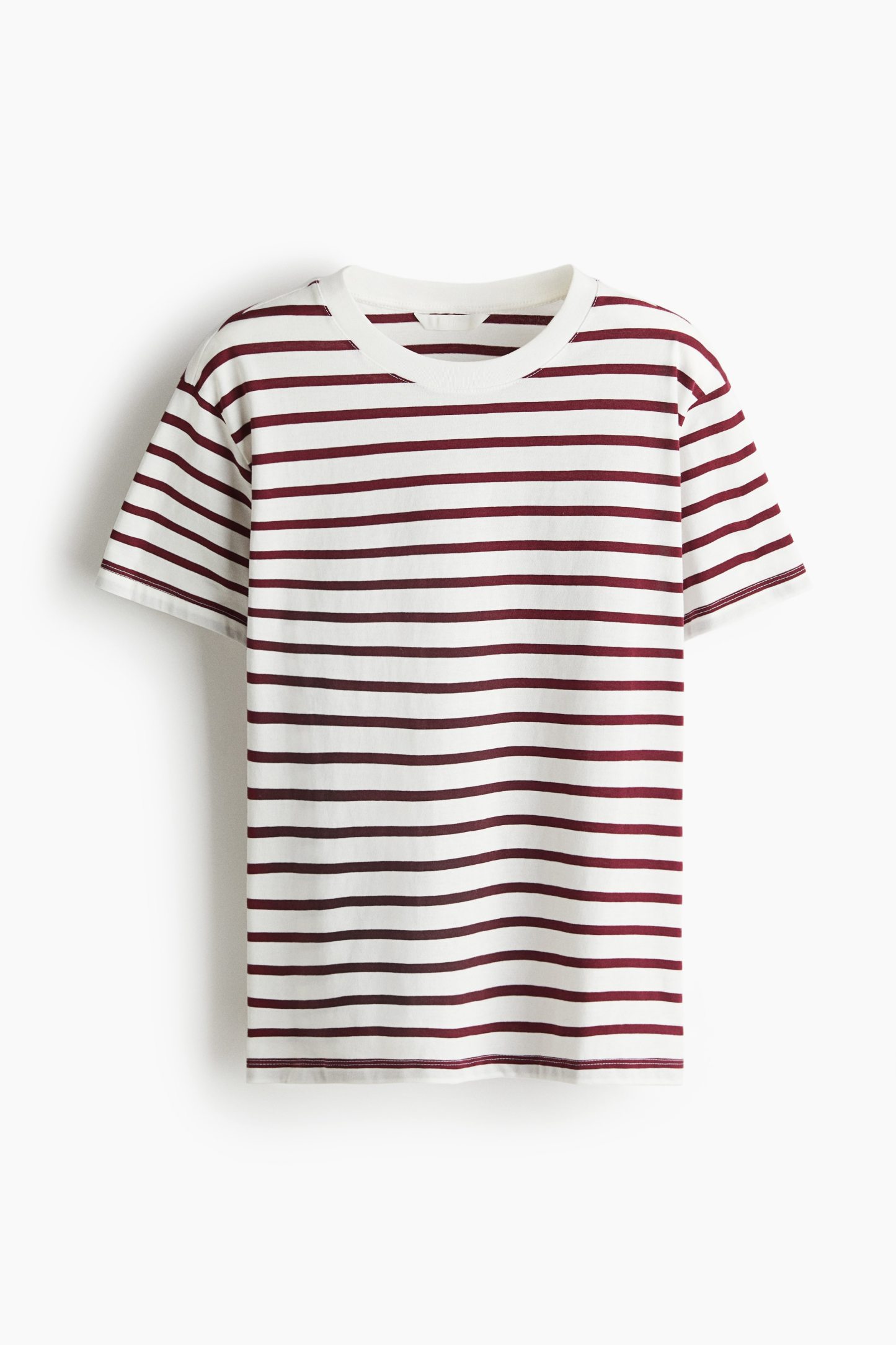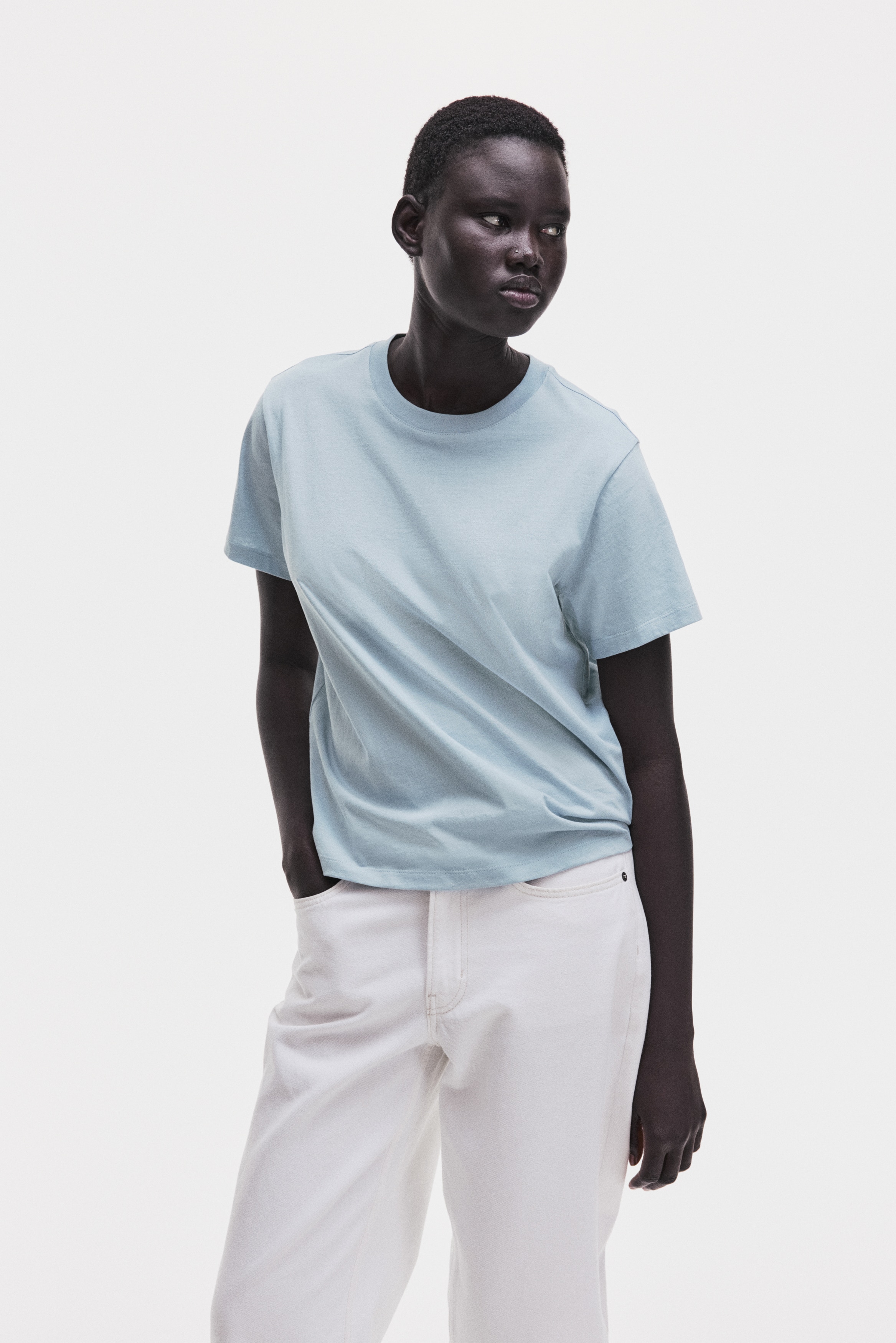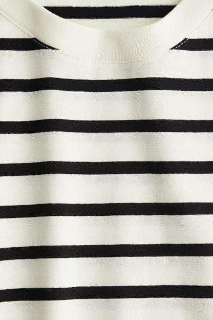 Straight-cut T-shirt in soft cotton jersey with a round, rib-trimmed neckline and gently dropped shoulders.