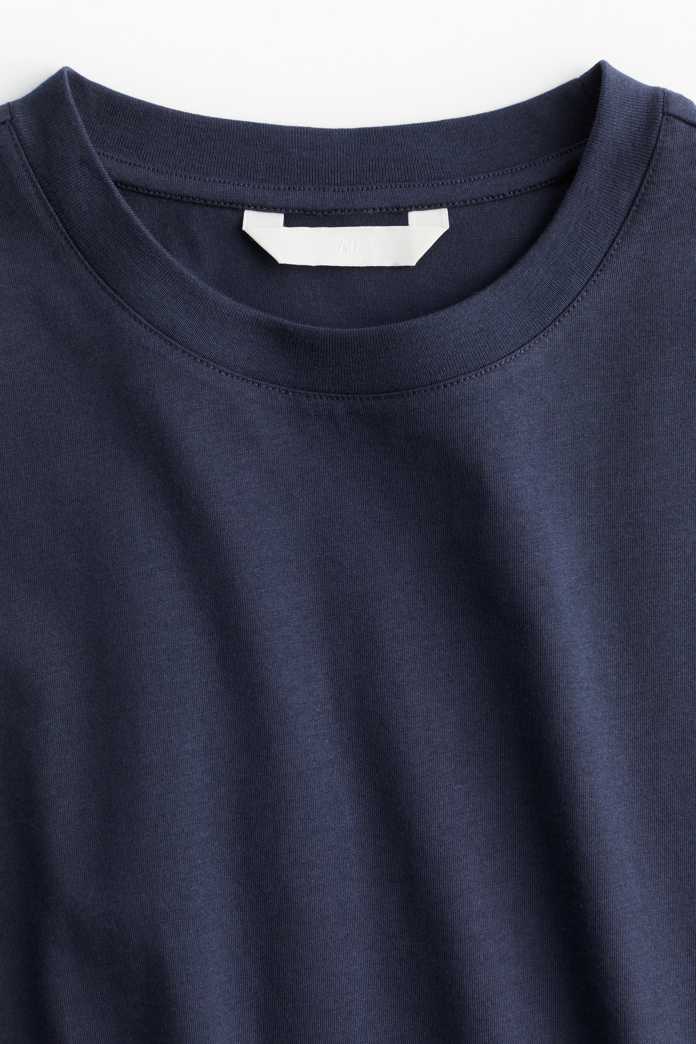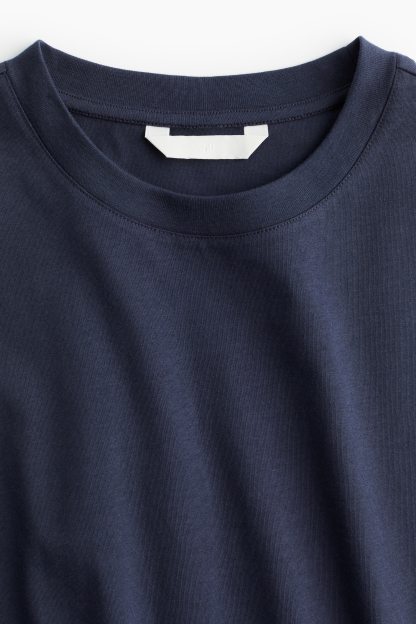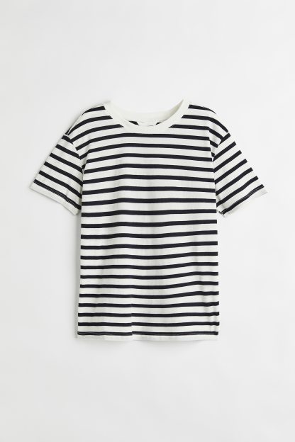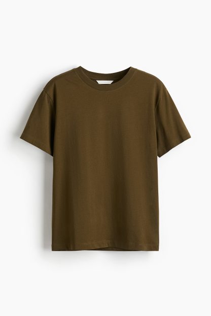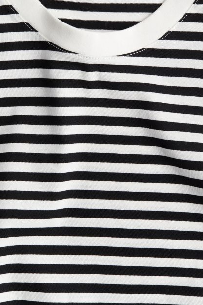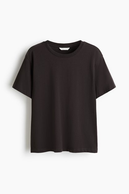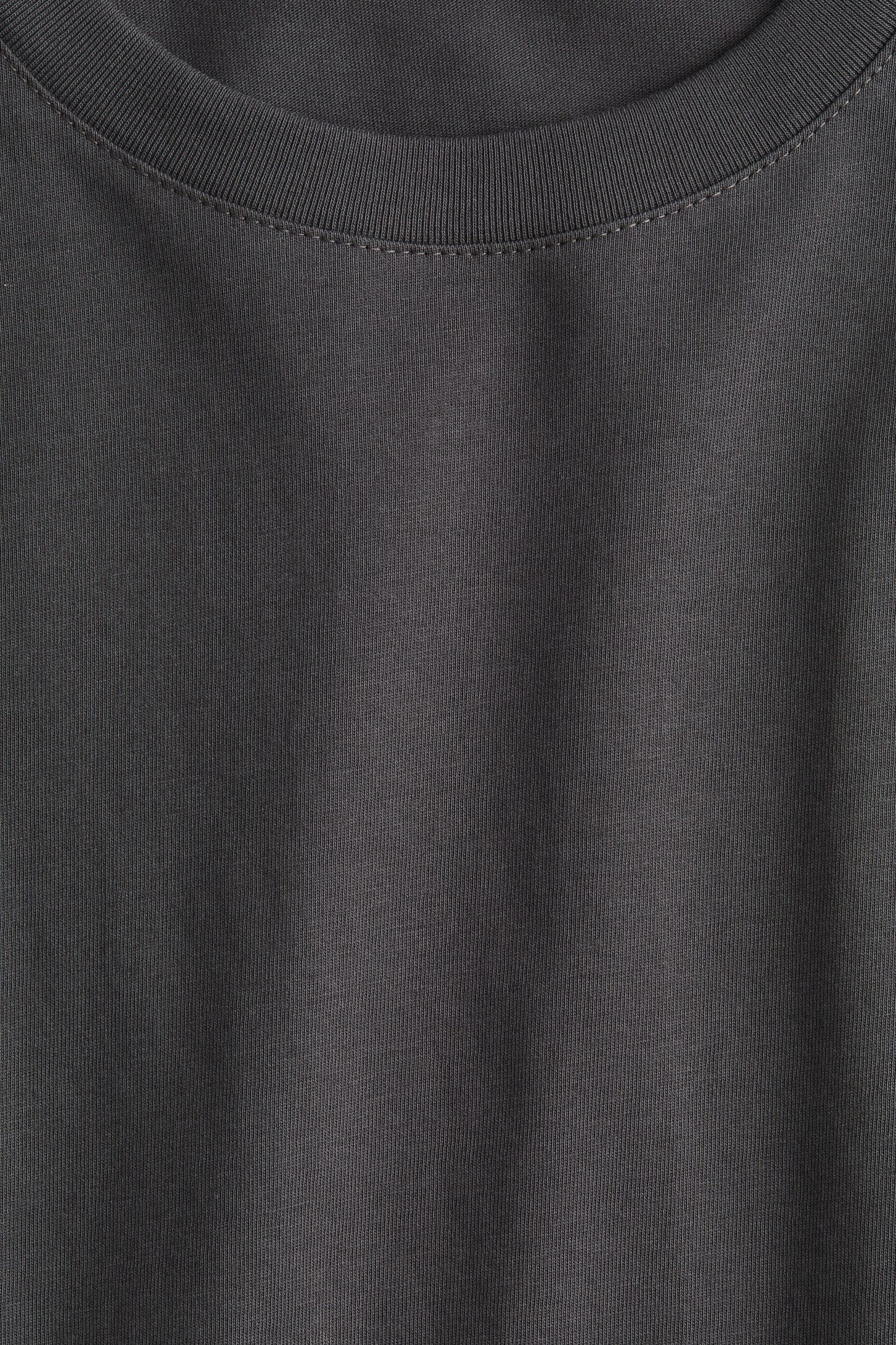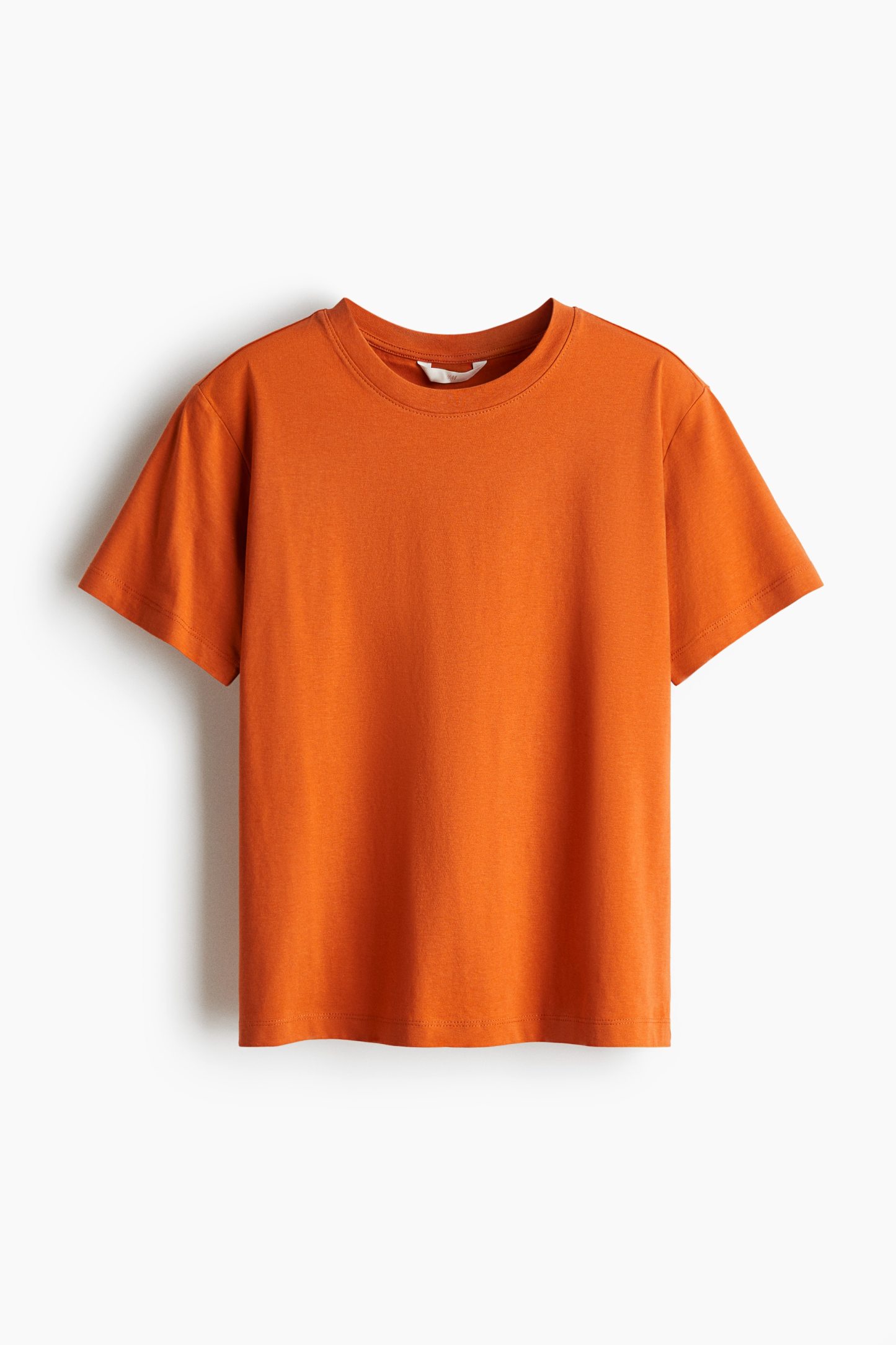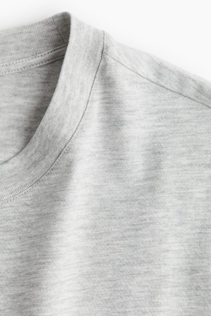 Straight-cut T-shirt in soft cotton jersey with a round, rib-trimmed neckline and gently dropped shoulders.