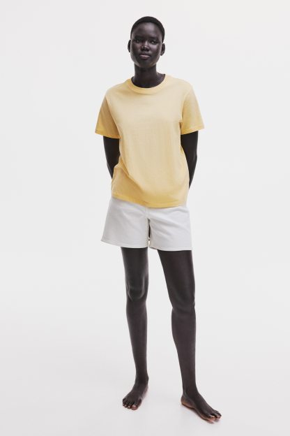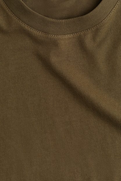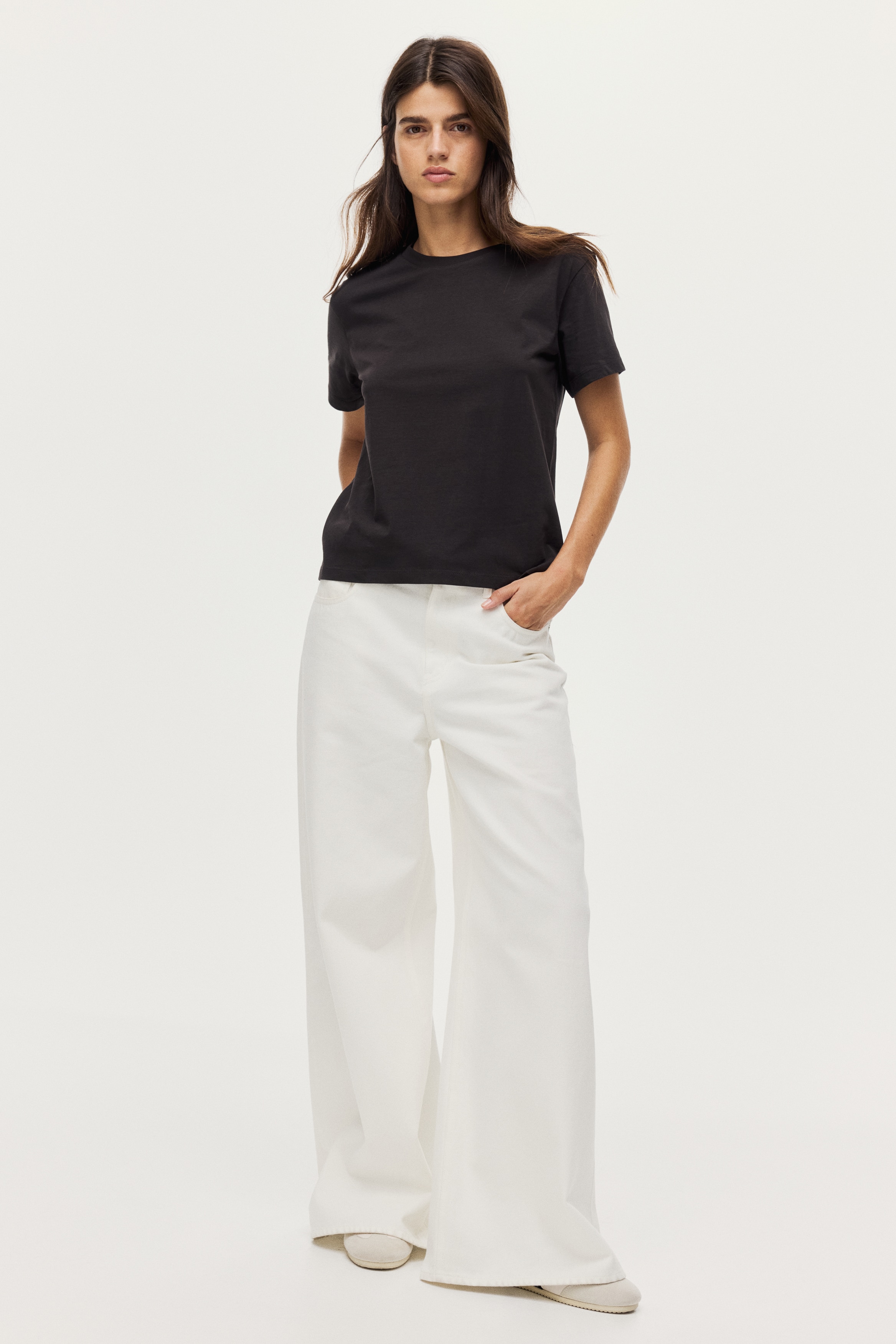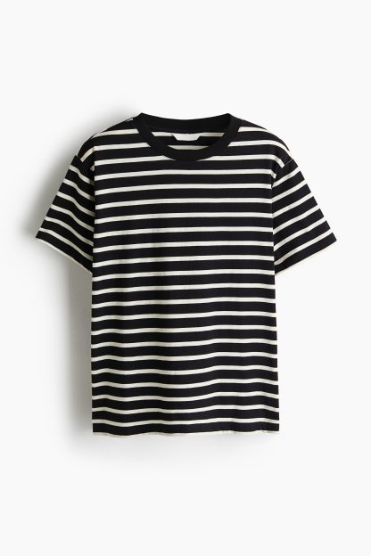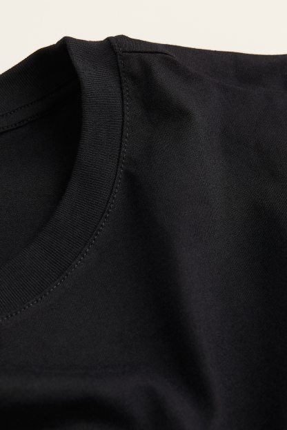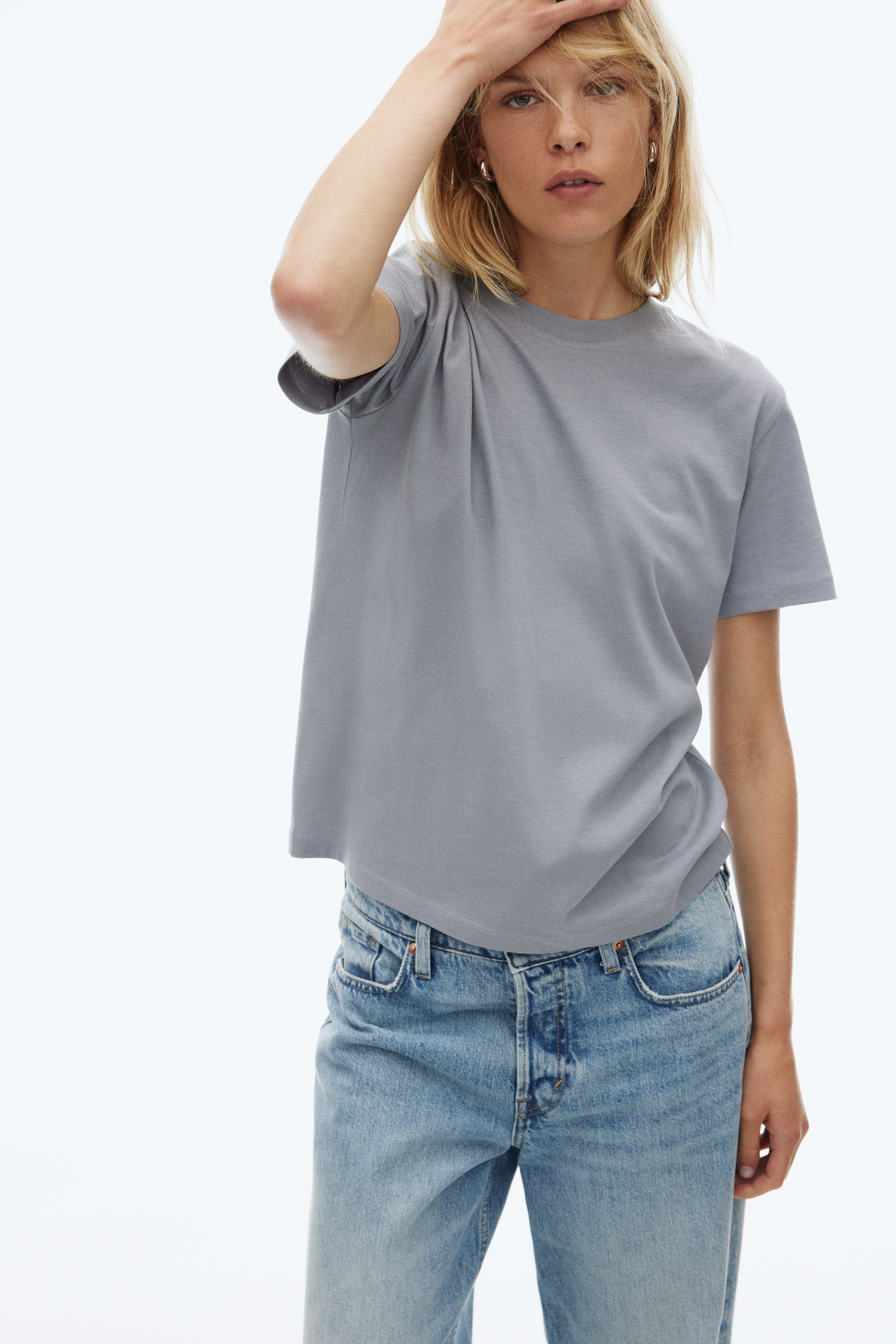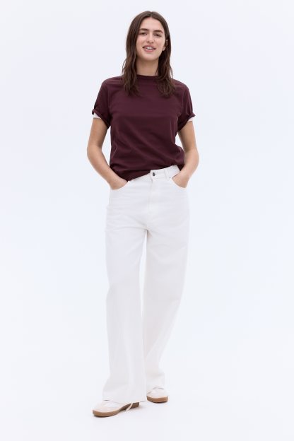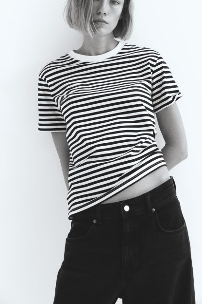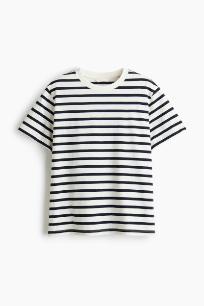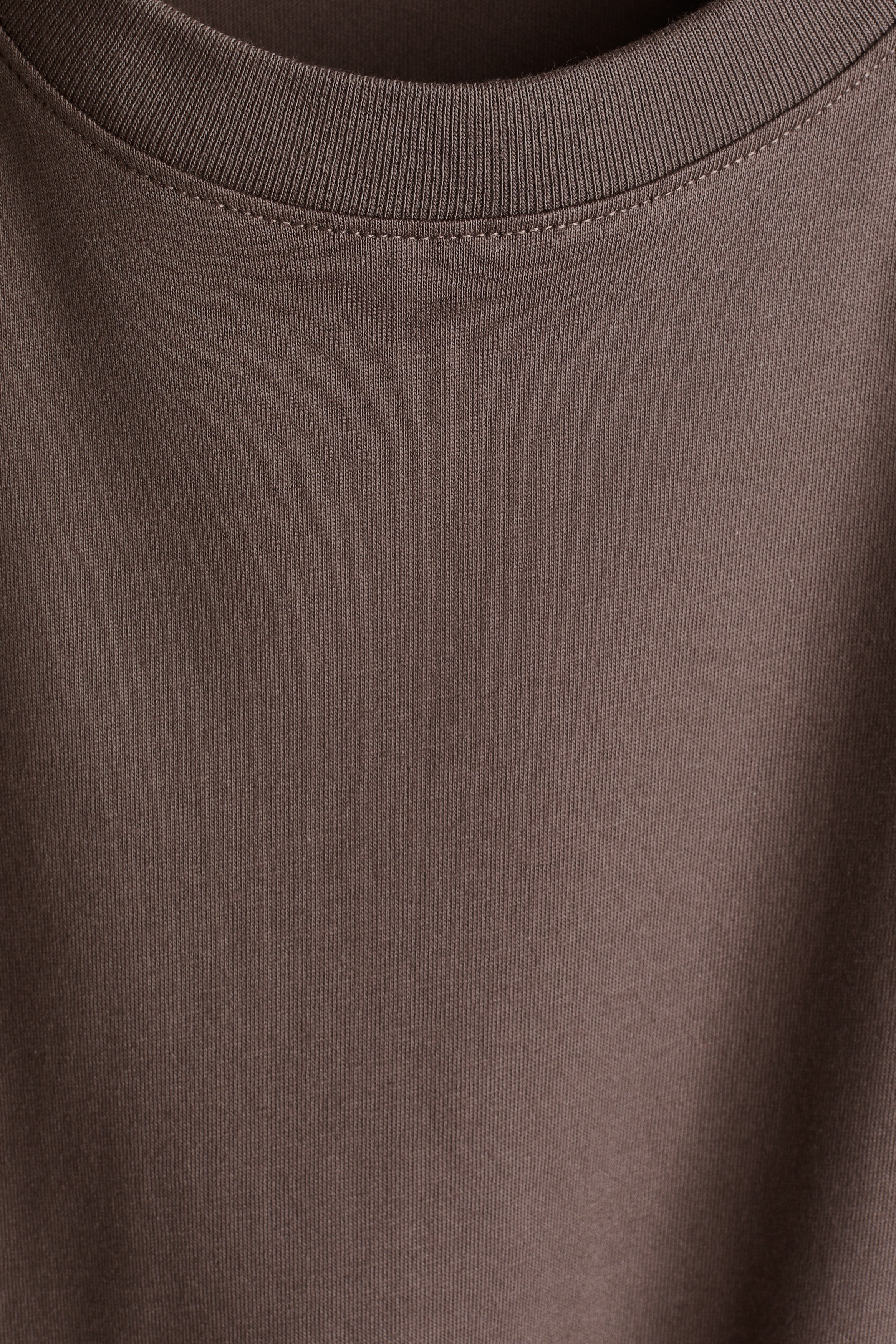 Straight-cut T-shirt in soft cotton jersey with a round, rib-trimmed neckline and gently dropped shoulders.