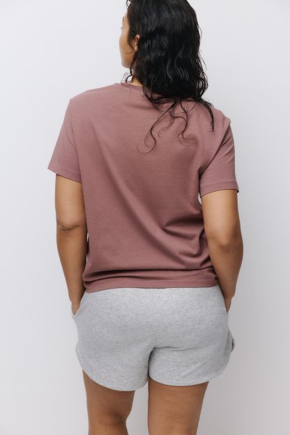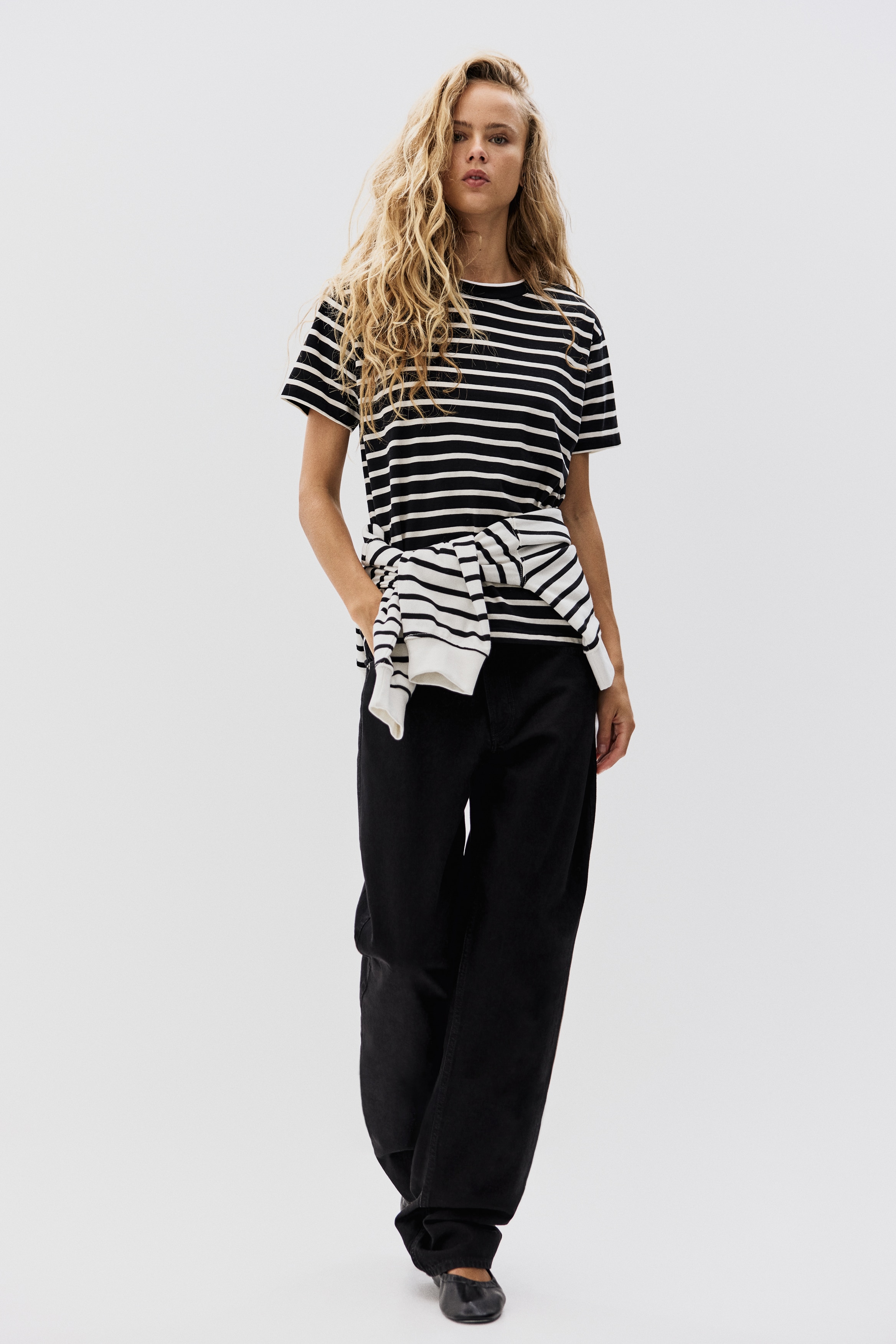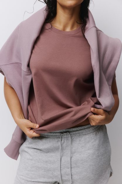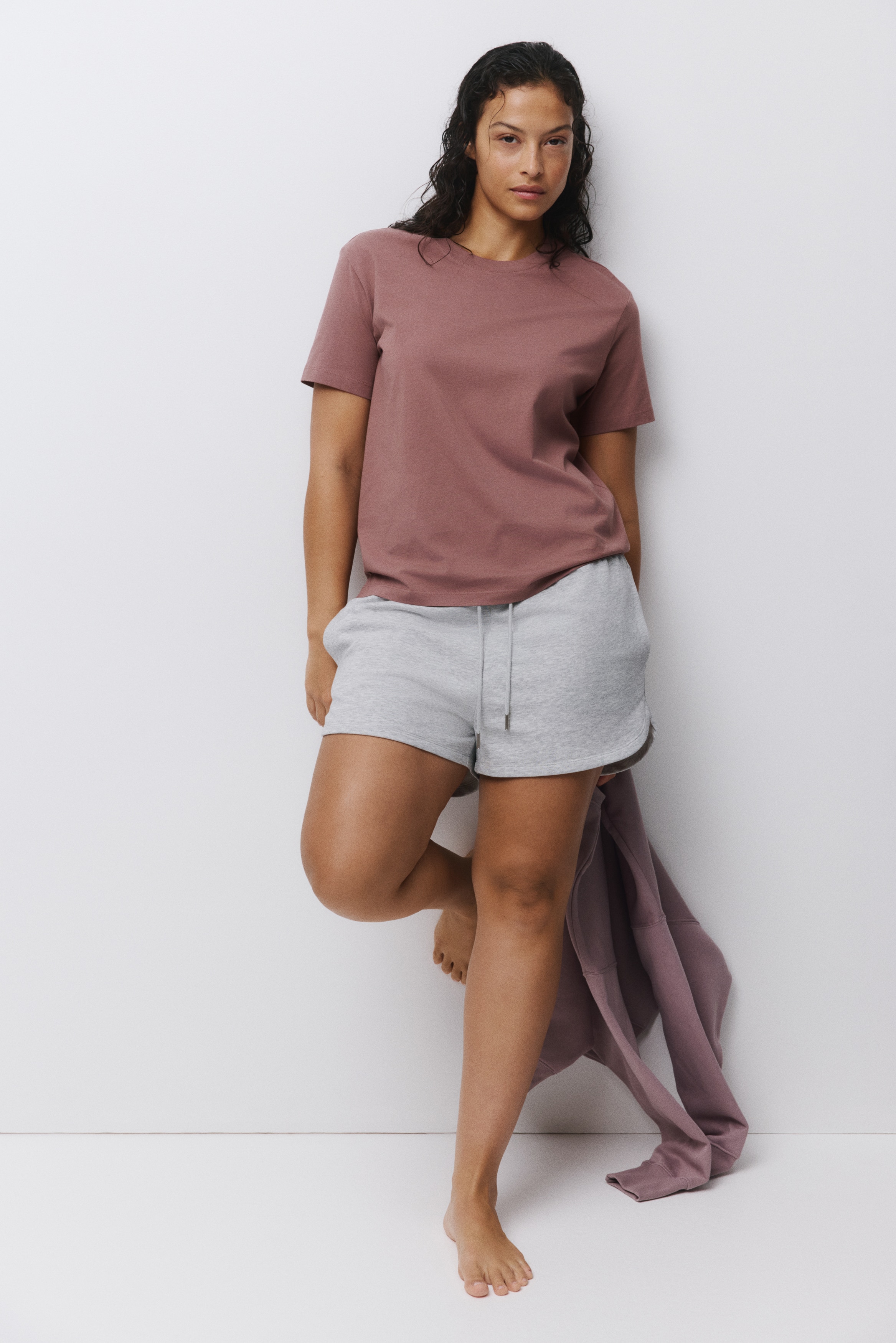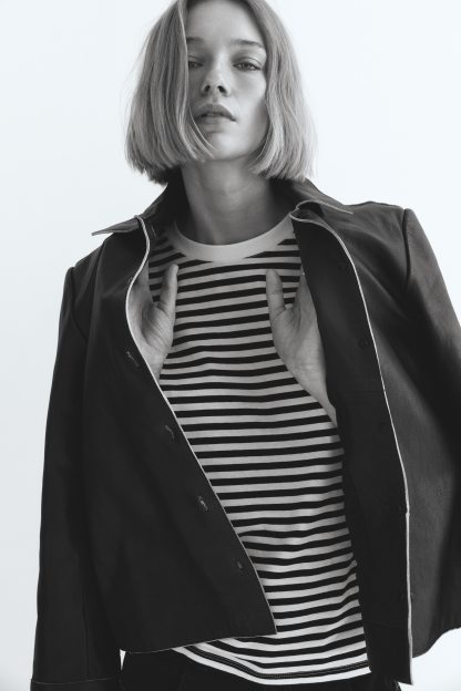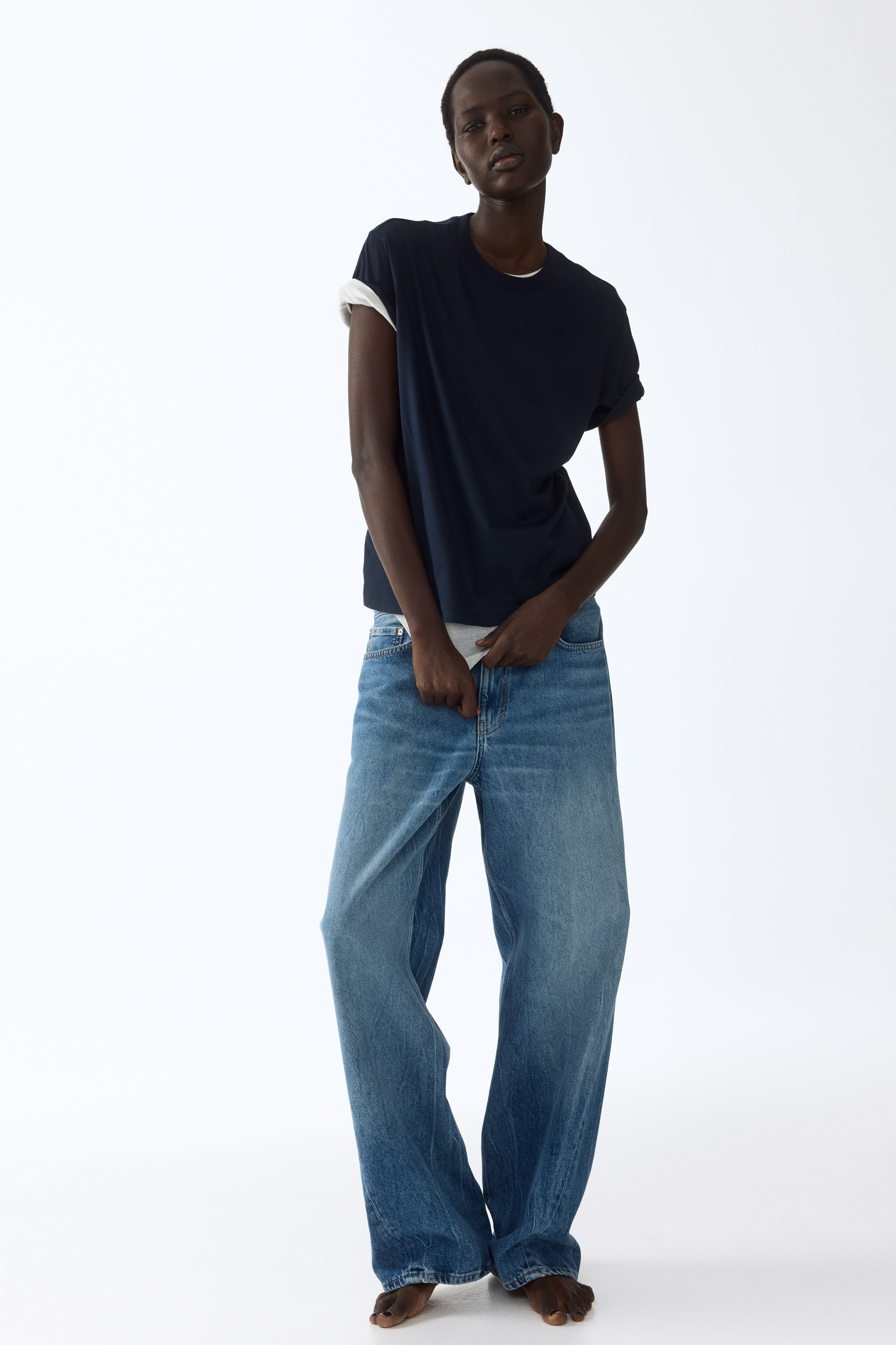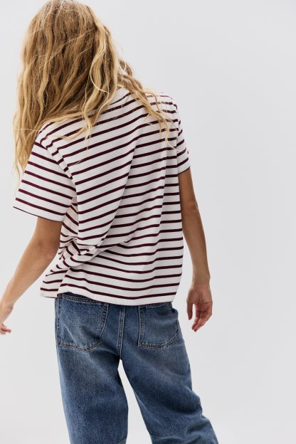 Straight-cut T-shirt in soft cotton jersey with a round, rib-trimmed neckline and gently dropped shoulders.