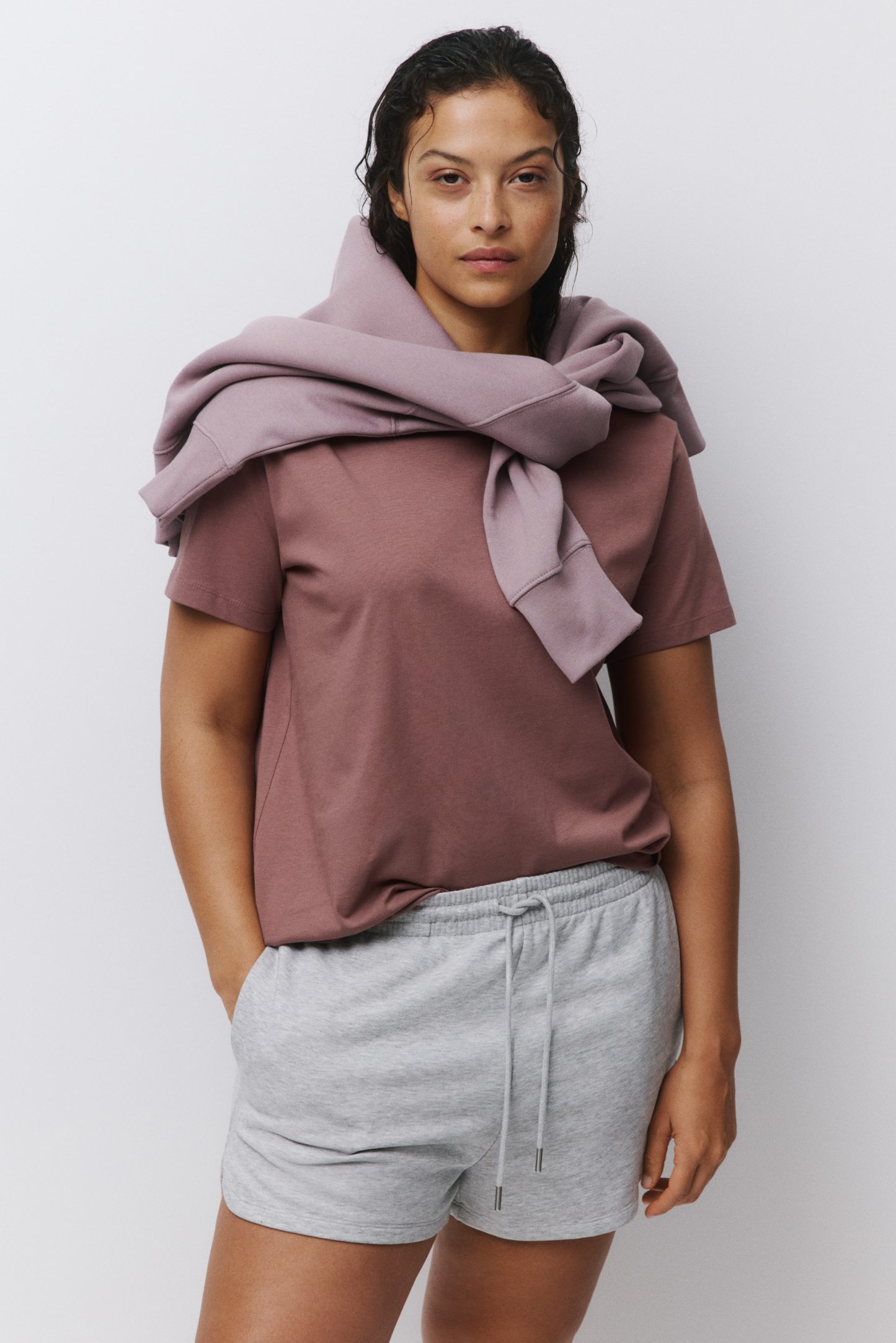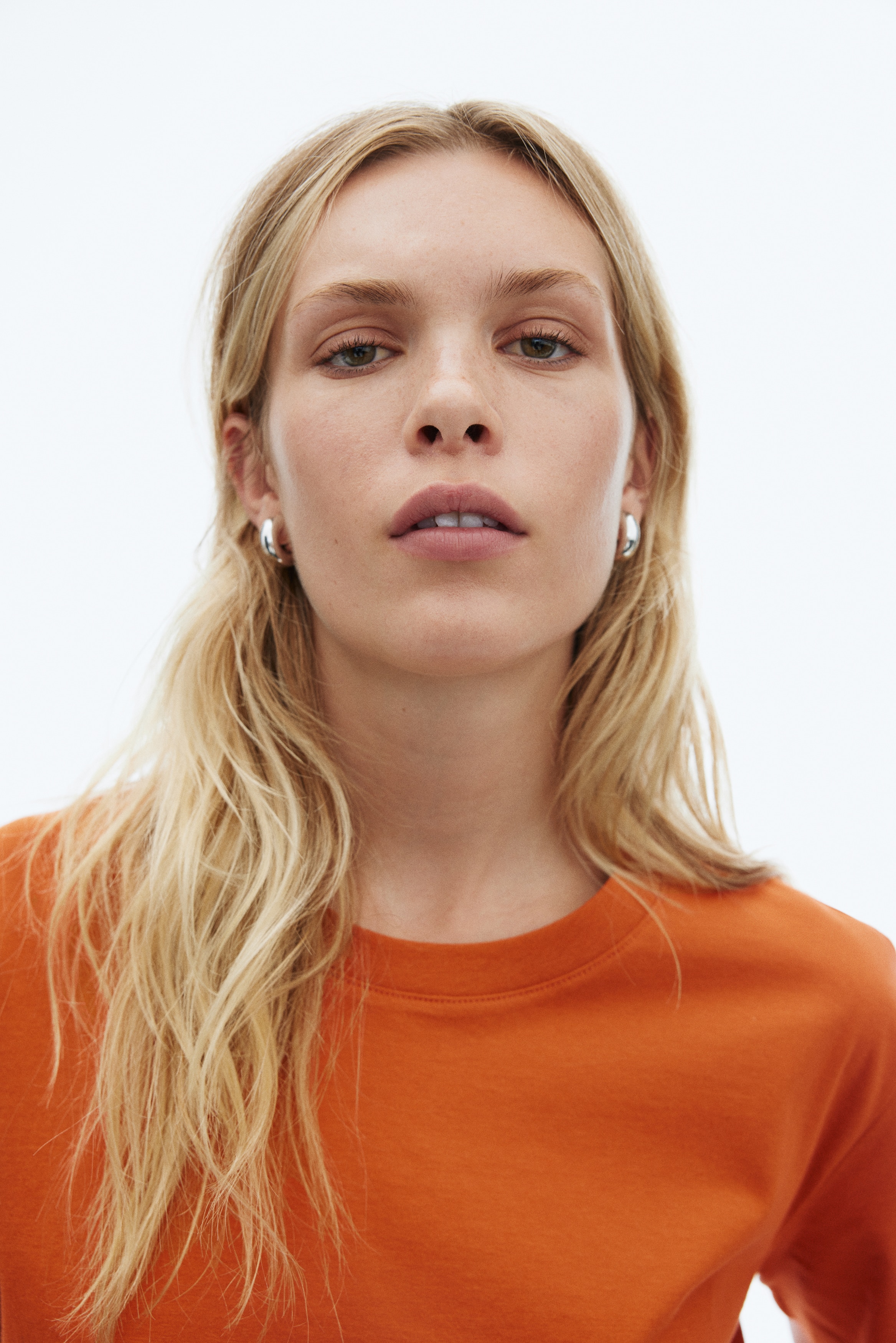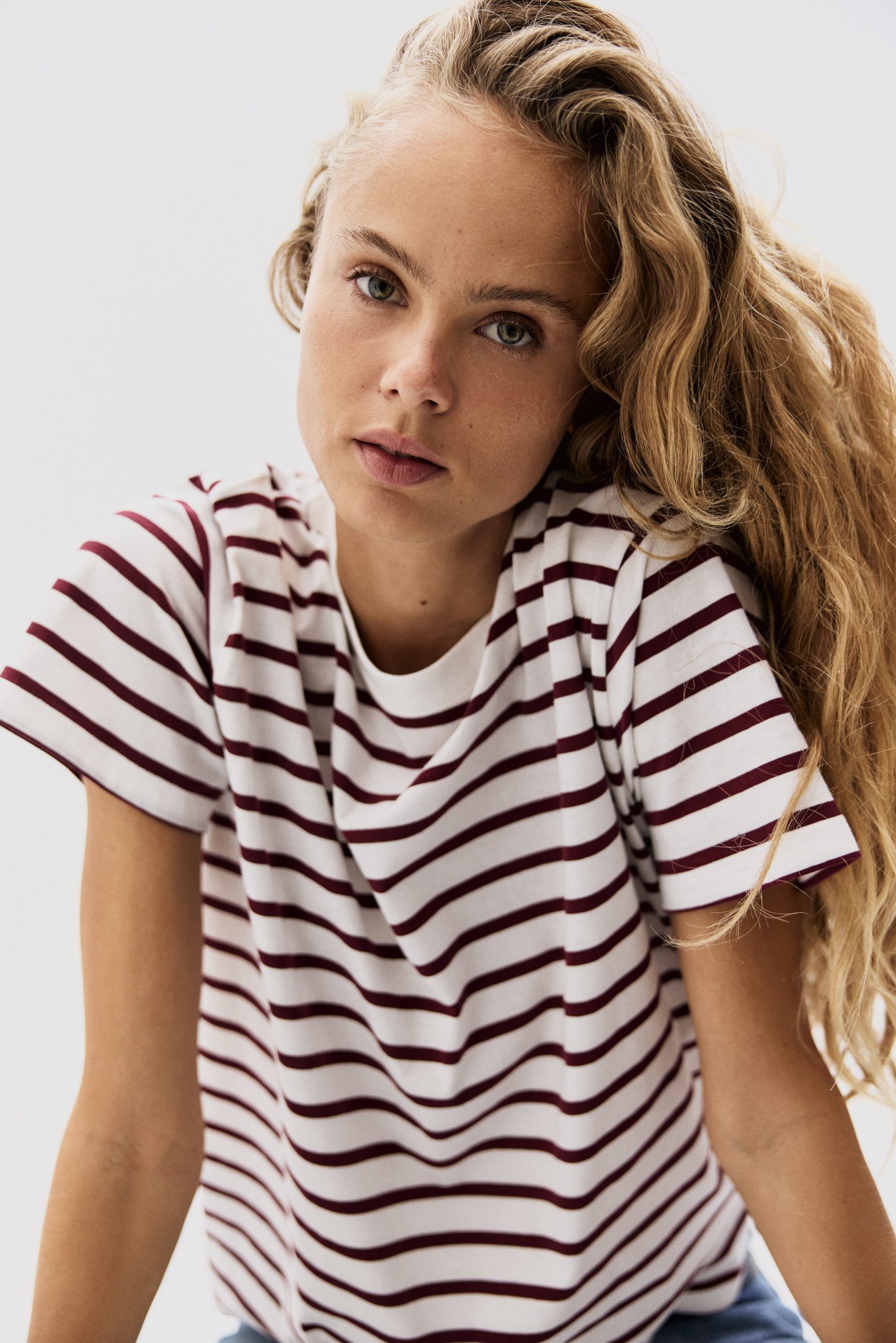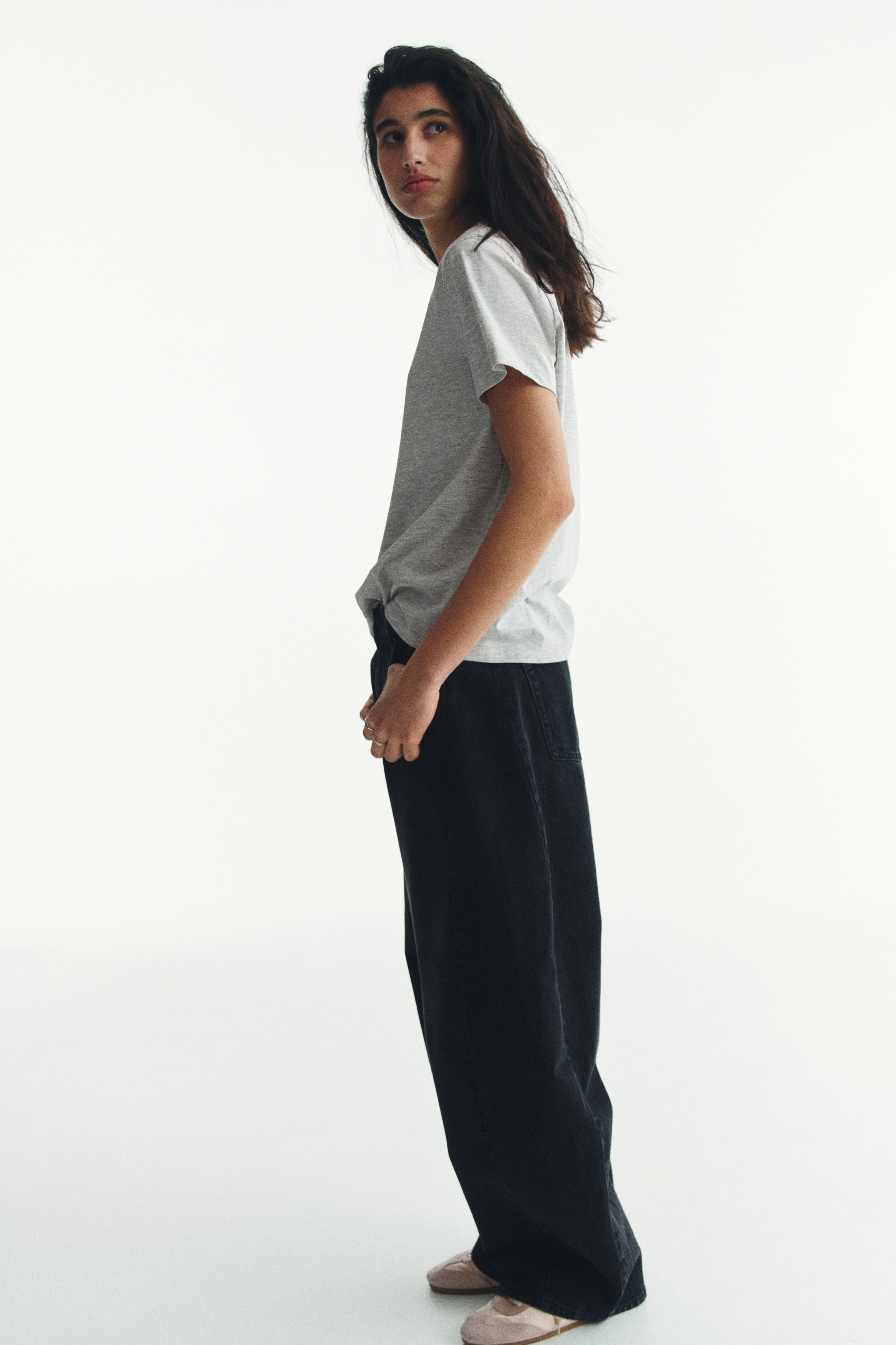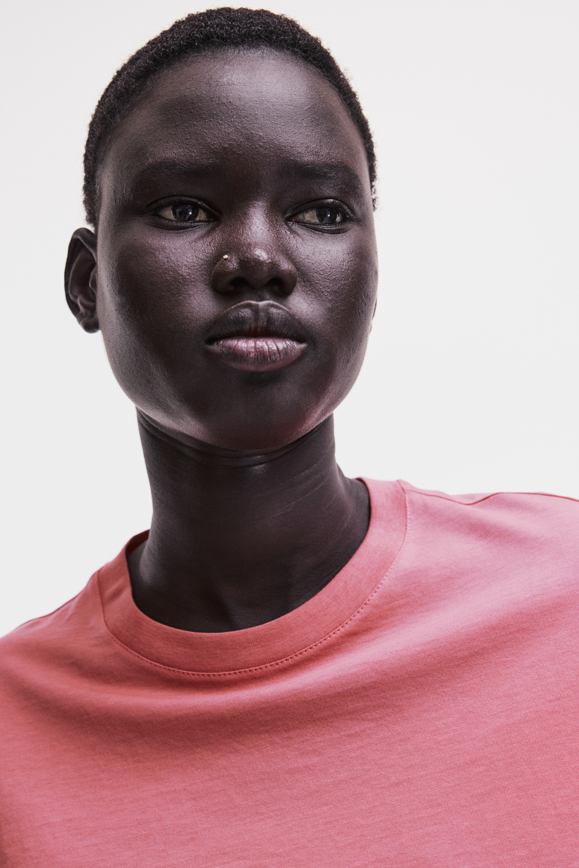 Straight-cut T-shirt in soft cotton jersey with a round, rib-trimmed neckline and gently dropped shoulders.