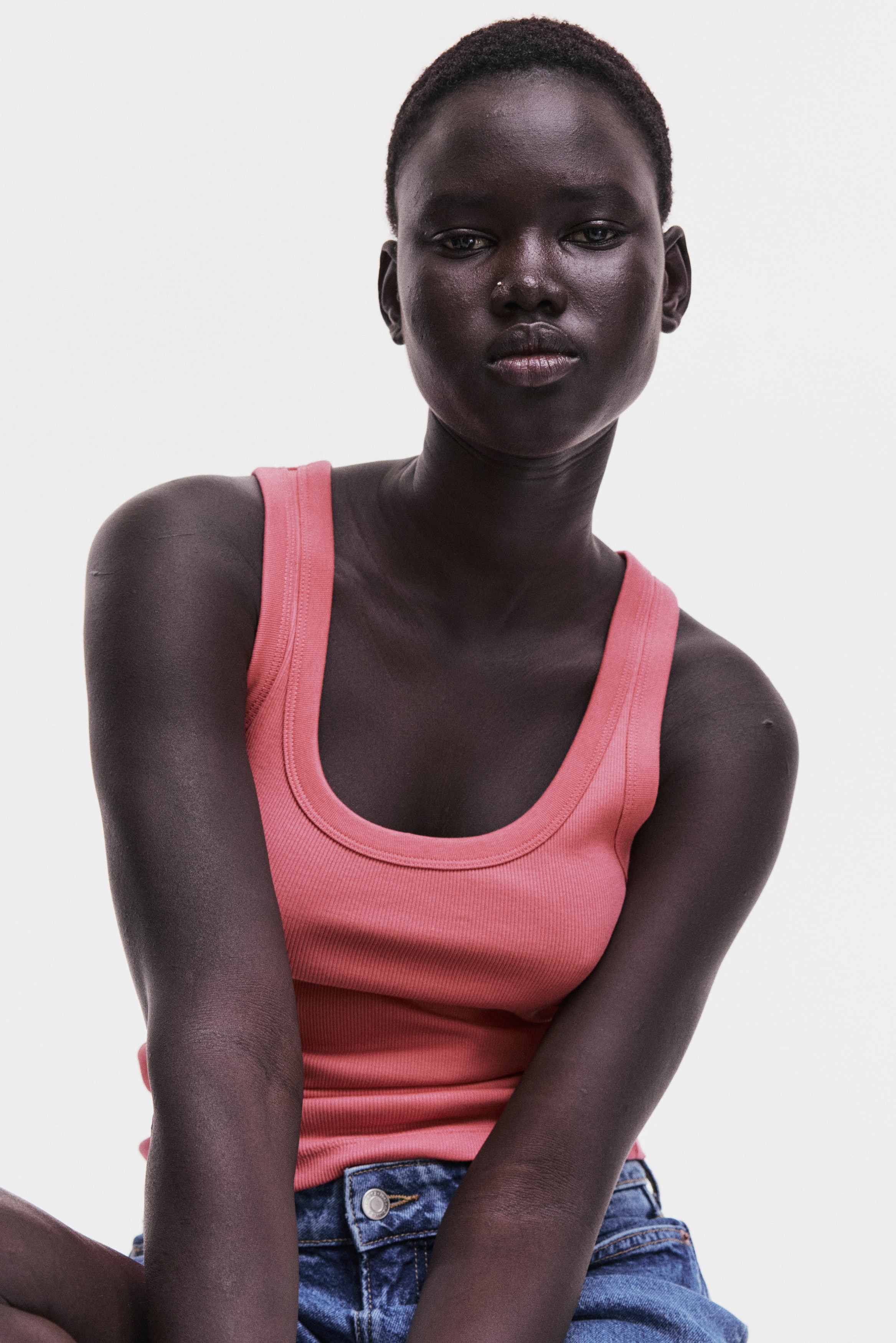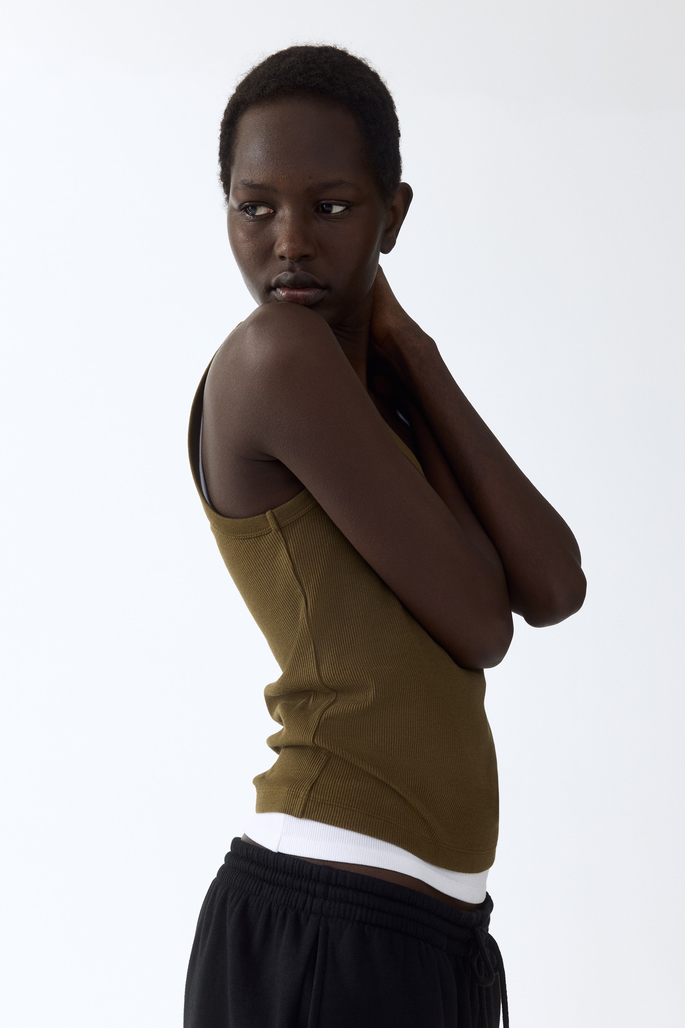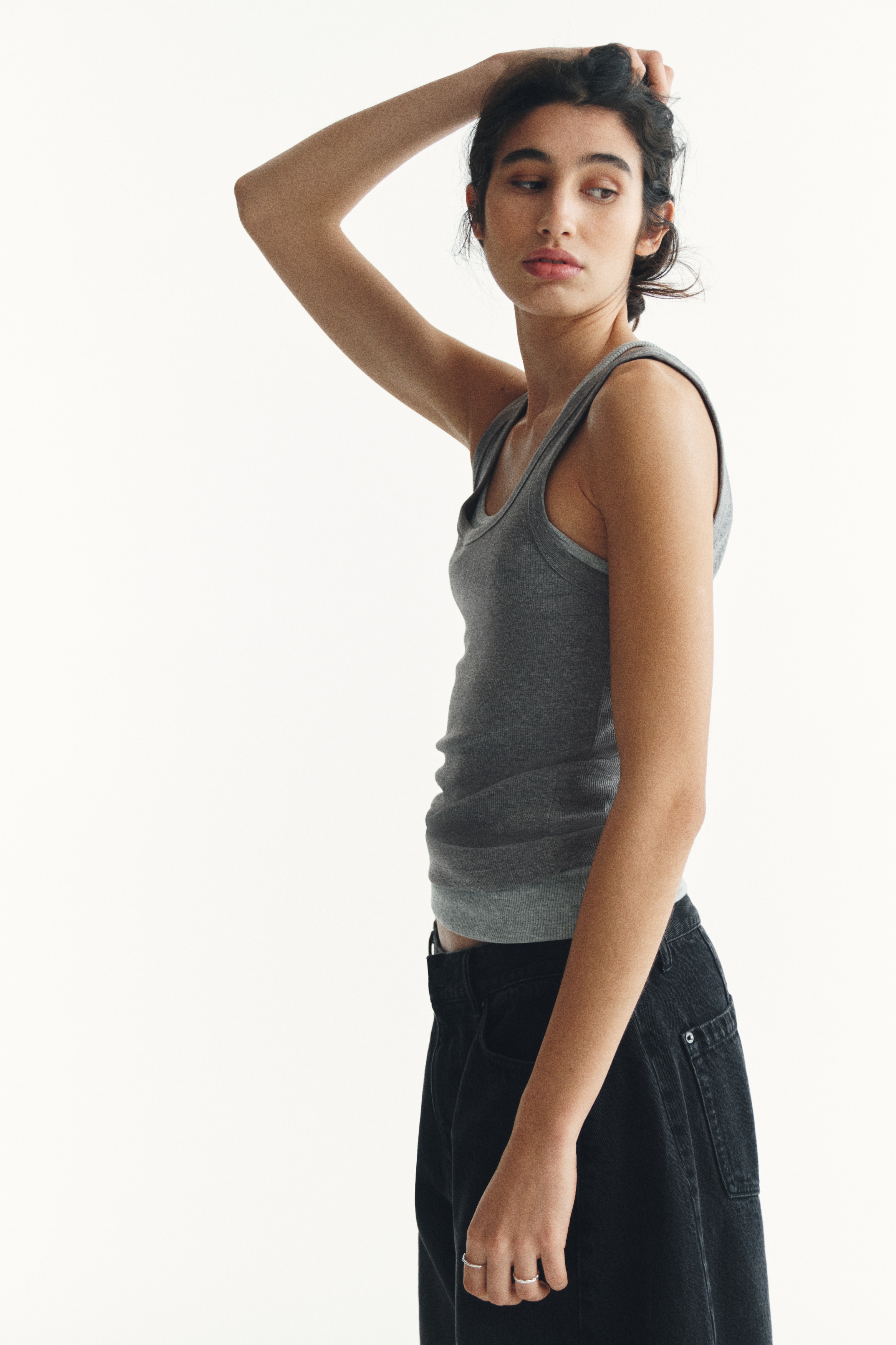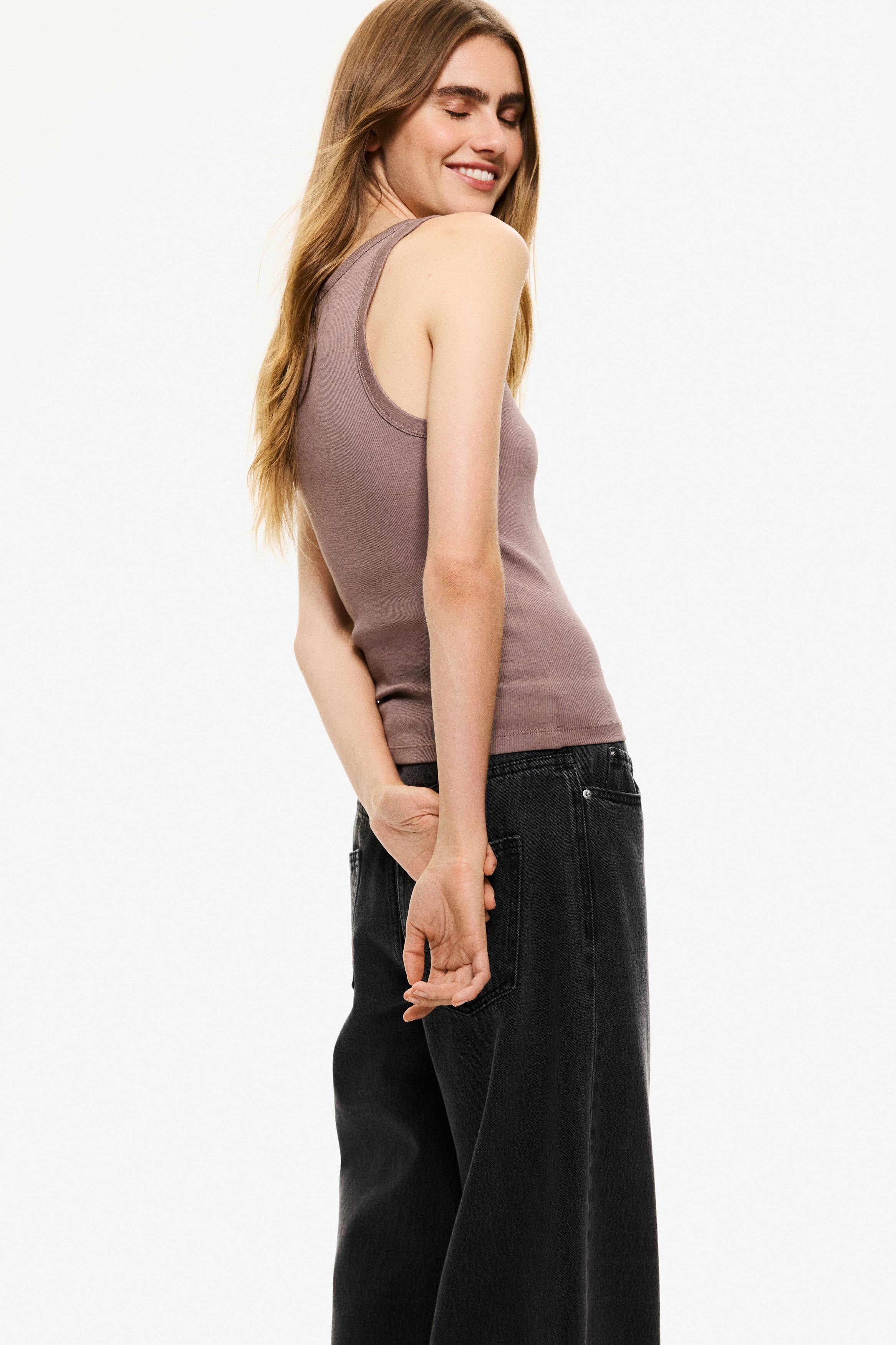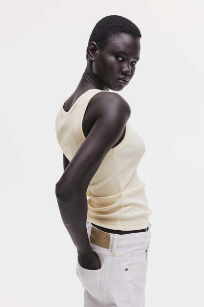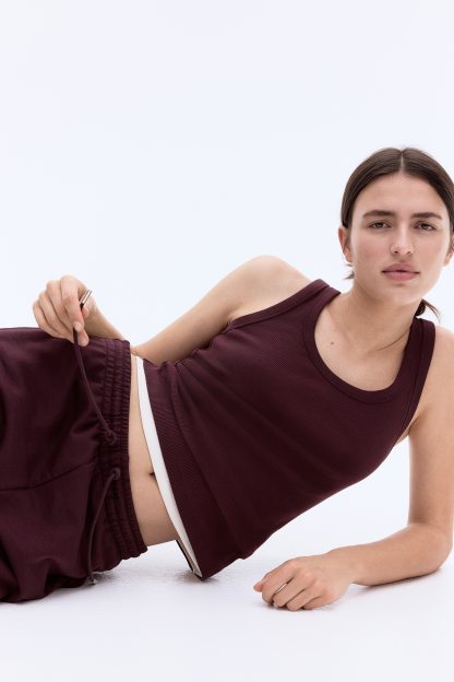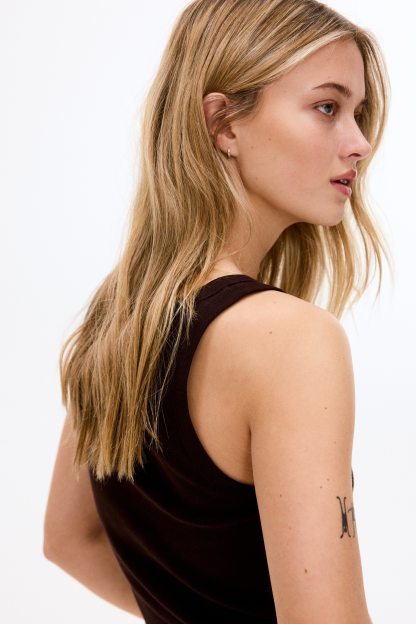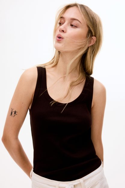 Fitted vest top in ribbed cotton jersey.