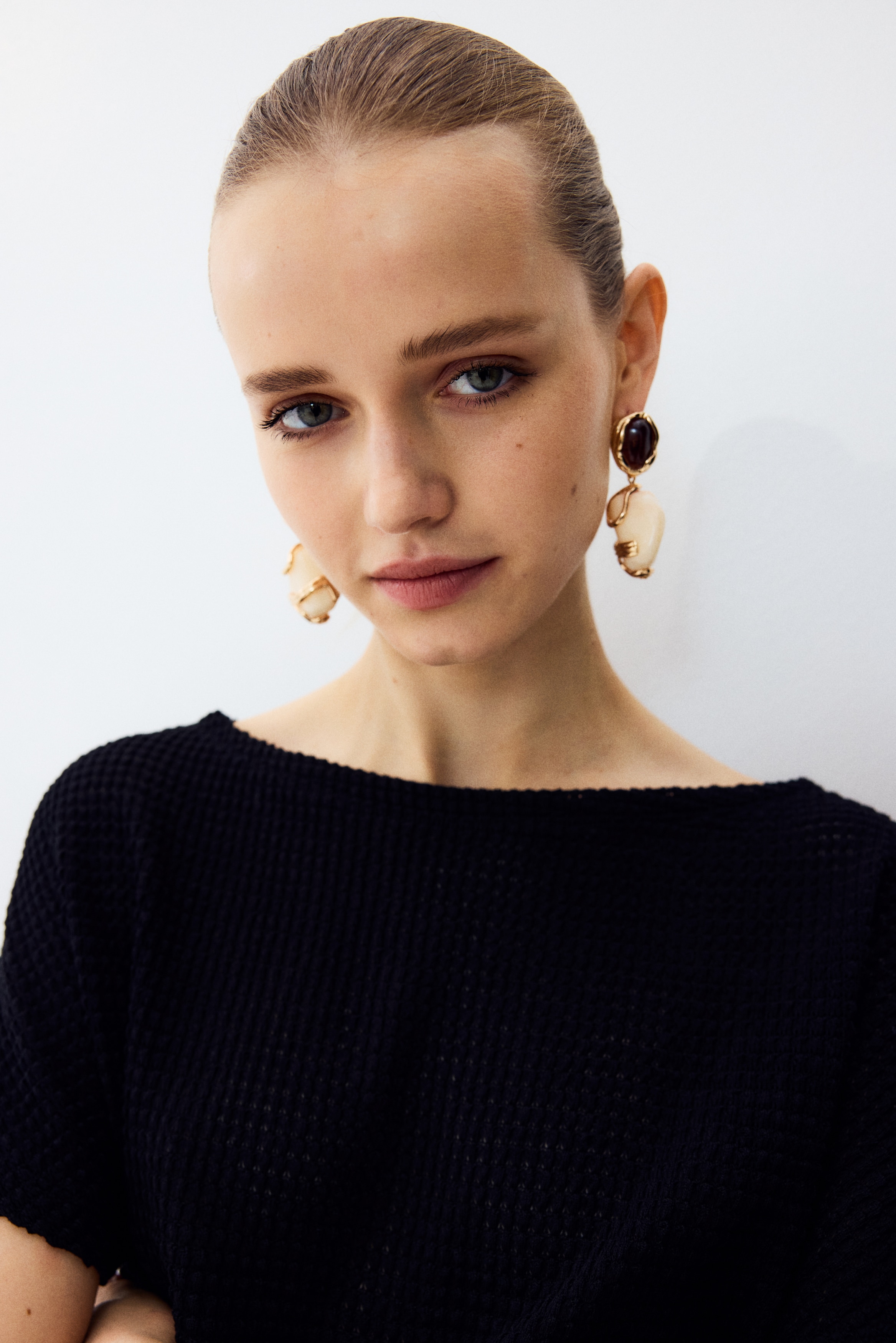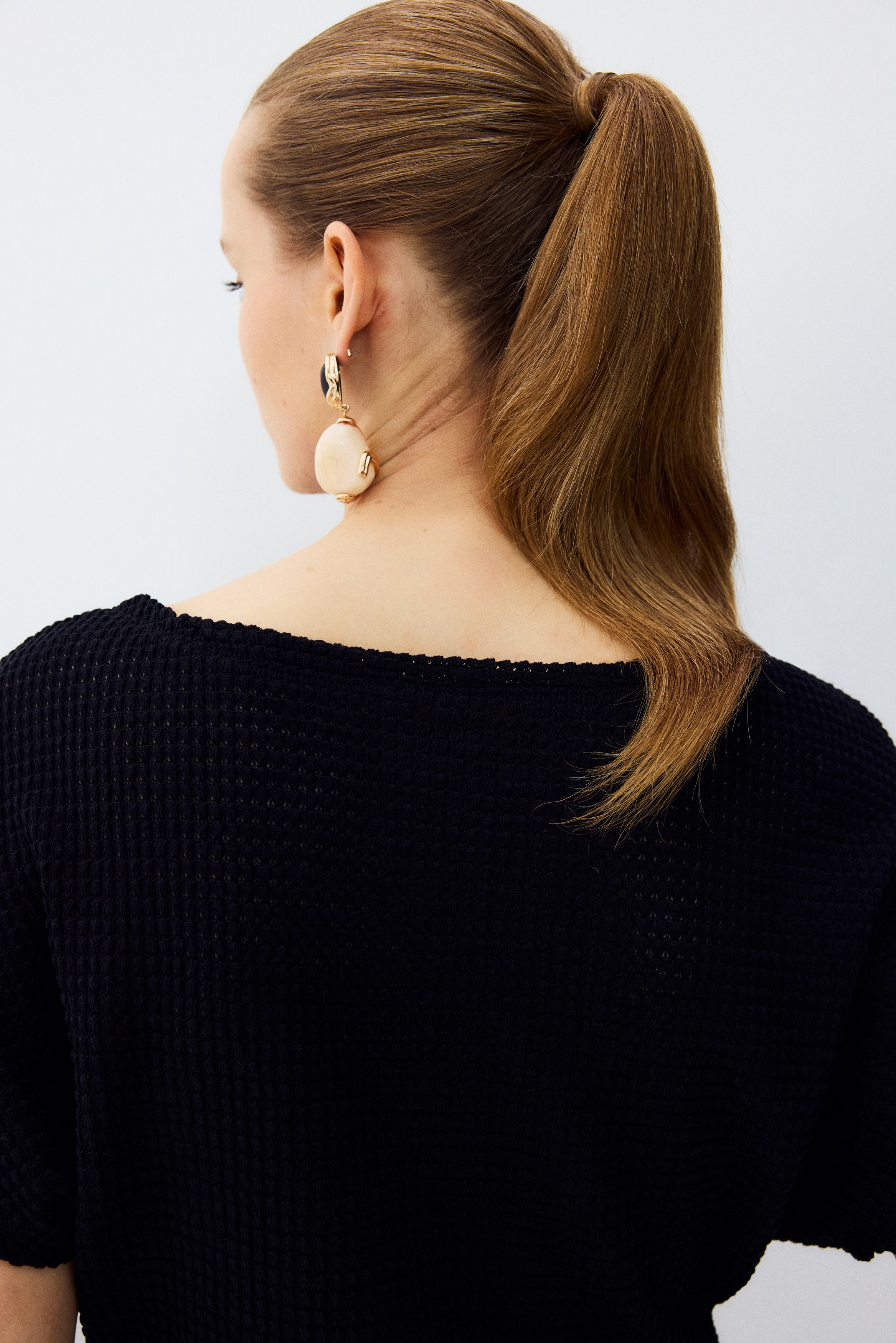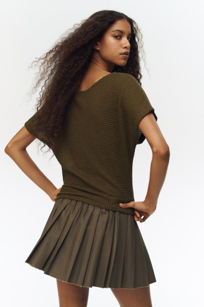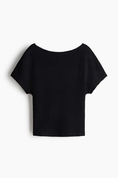 Top in textured jersey with a boat neckline and short batwing sleeves.