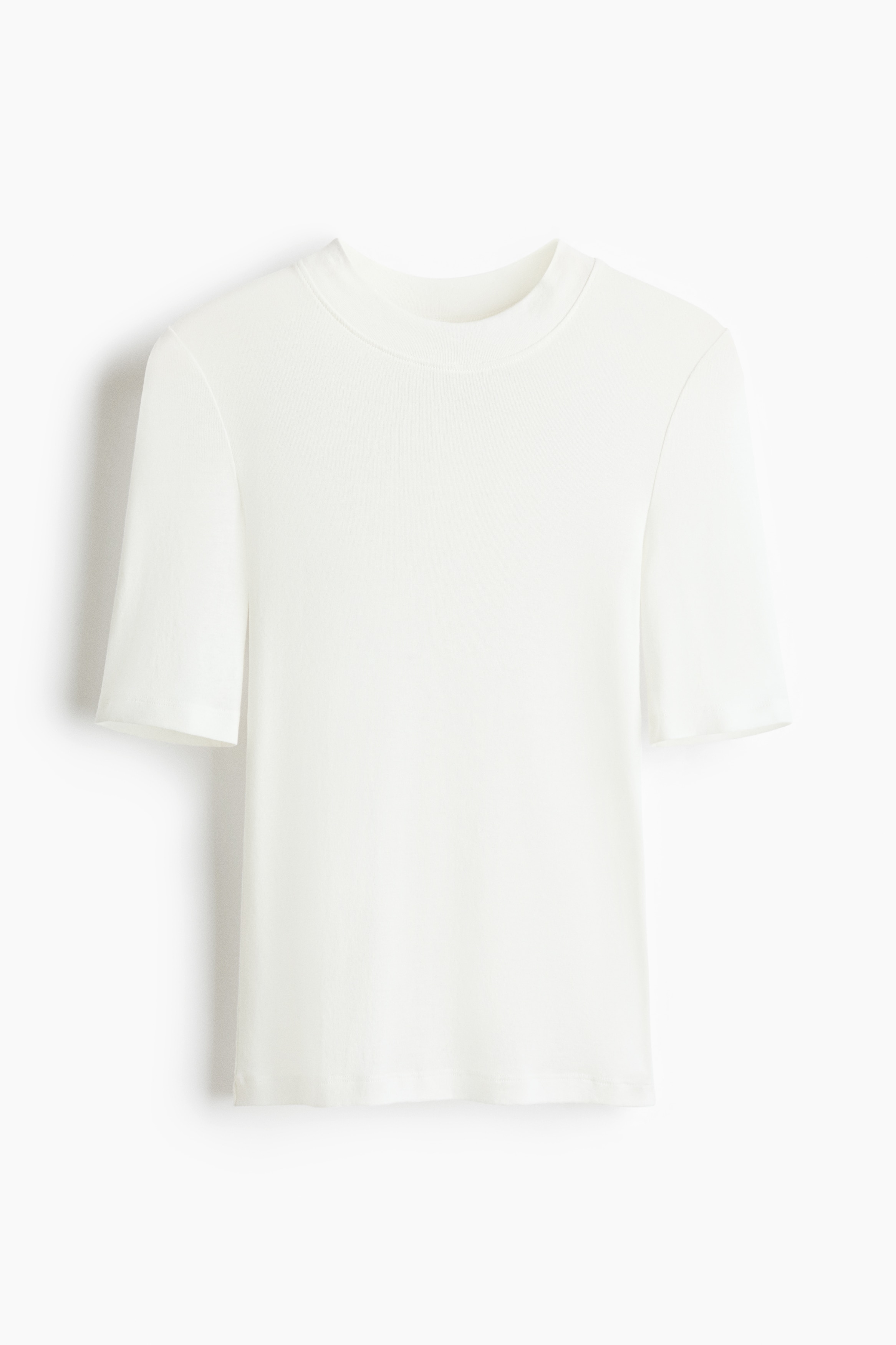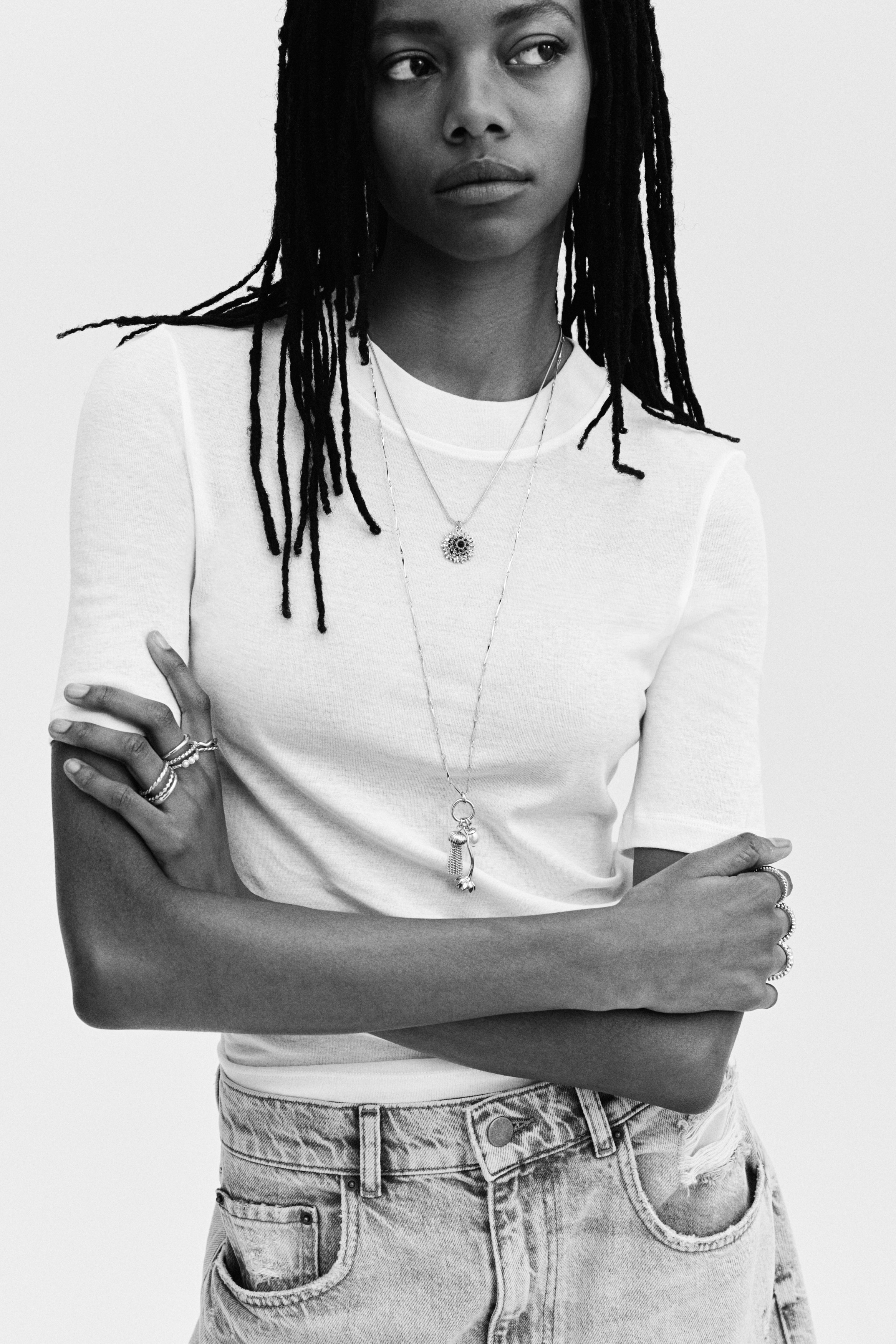 Fitted T-shirt in sheer pima cotton jersey featuring a round neckline and sleeves that end just above the elbows.