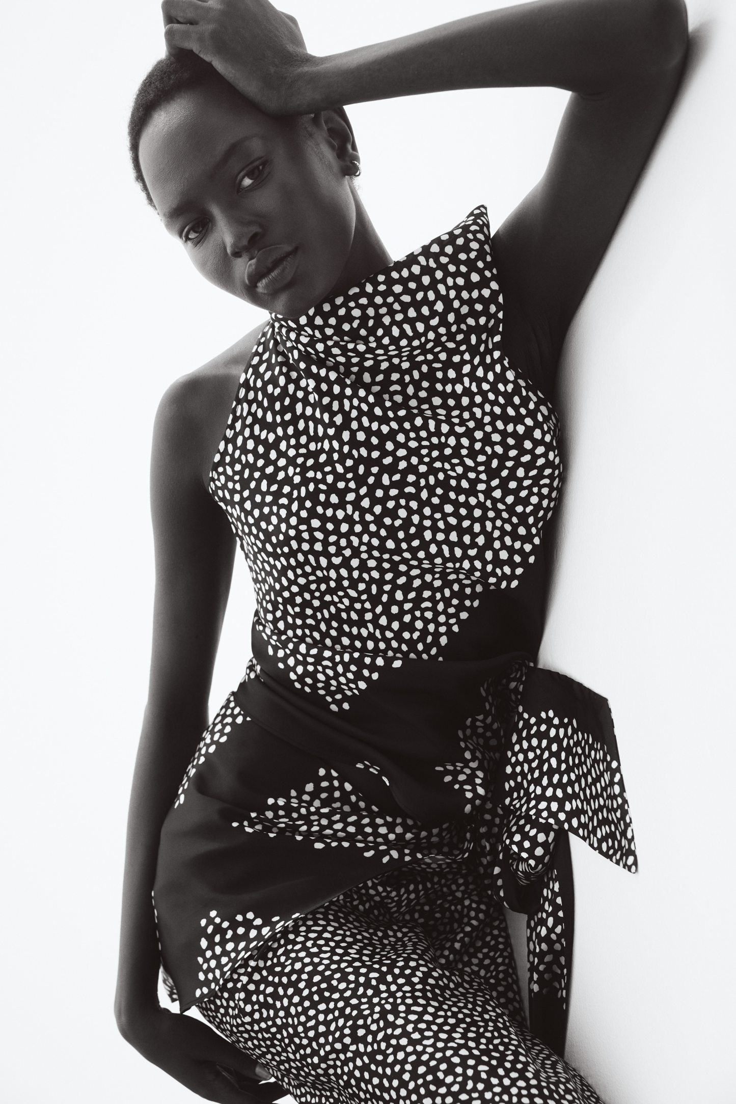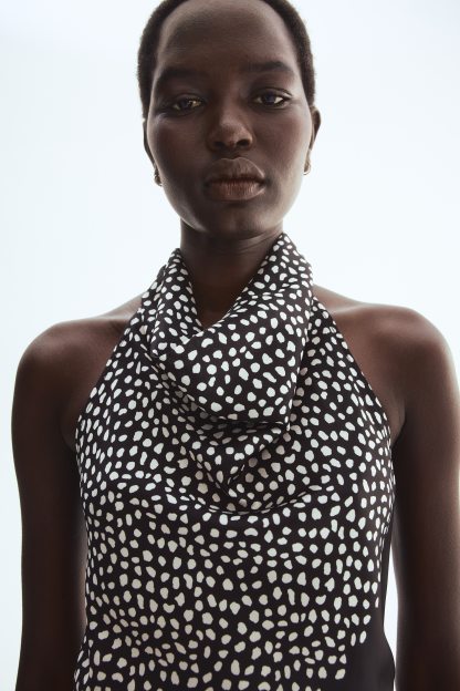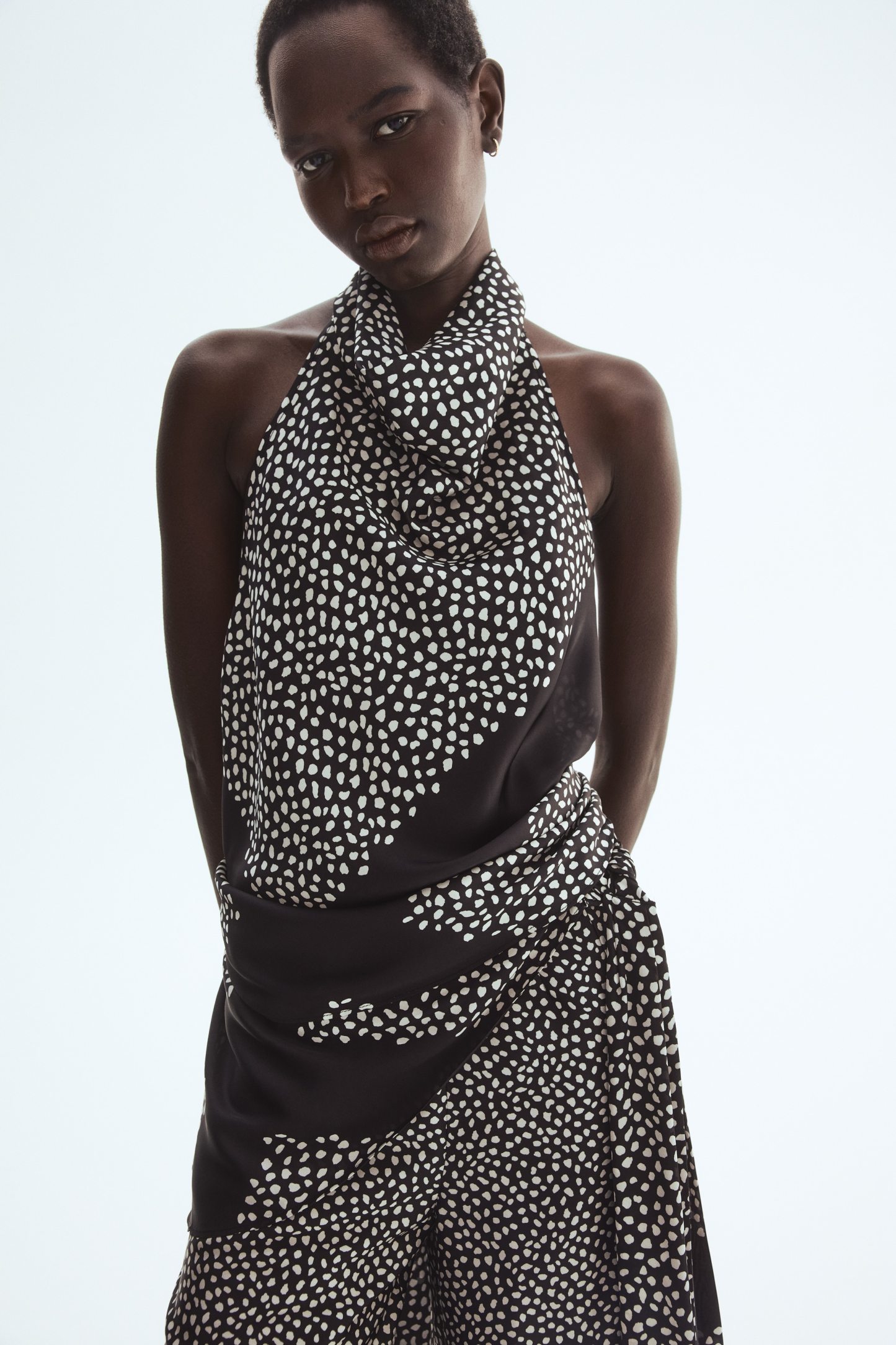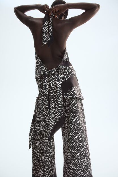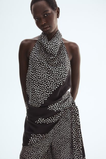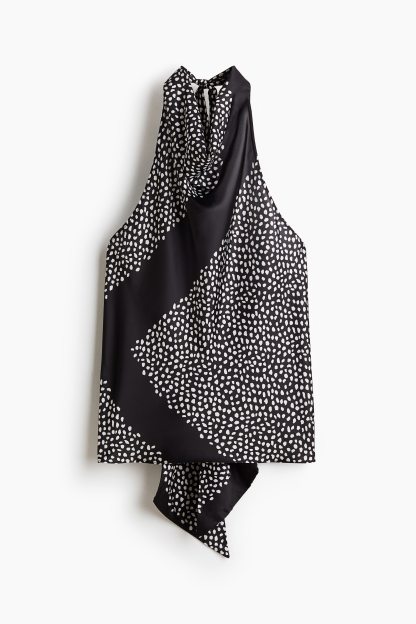 Sleeveless top in woven fabric with a cowl neckline and halterneck ties. Open back with wide ties at the back of the hem.