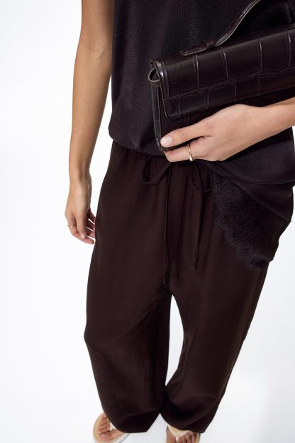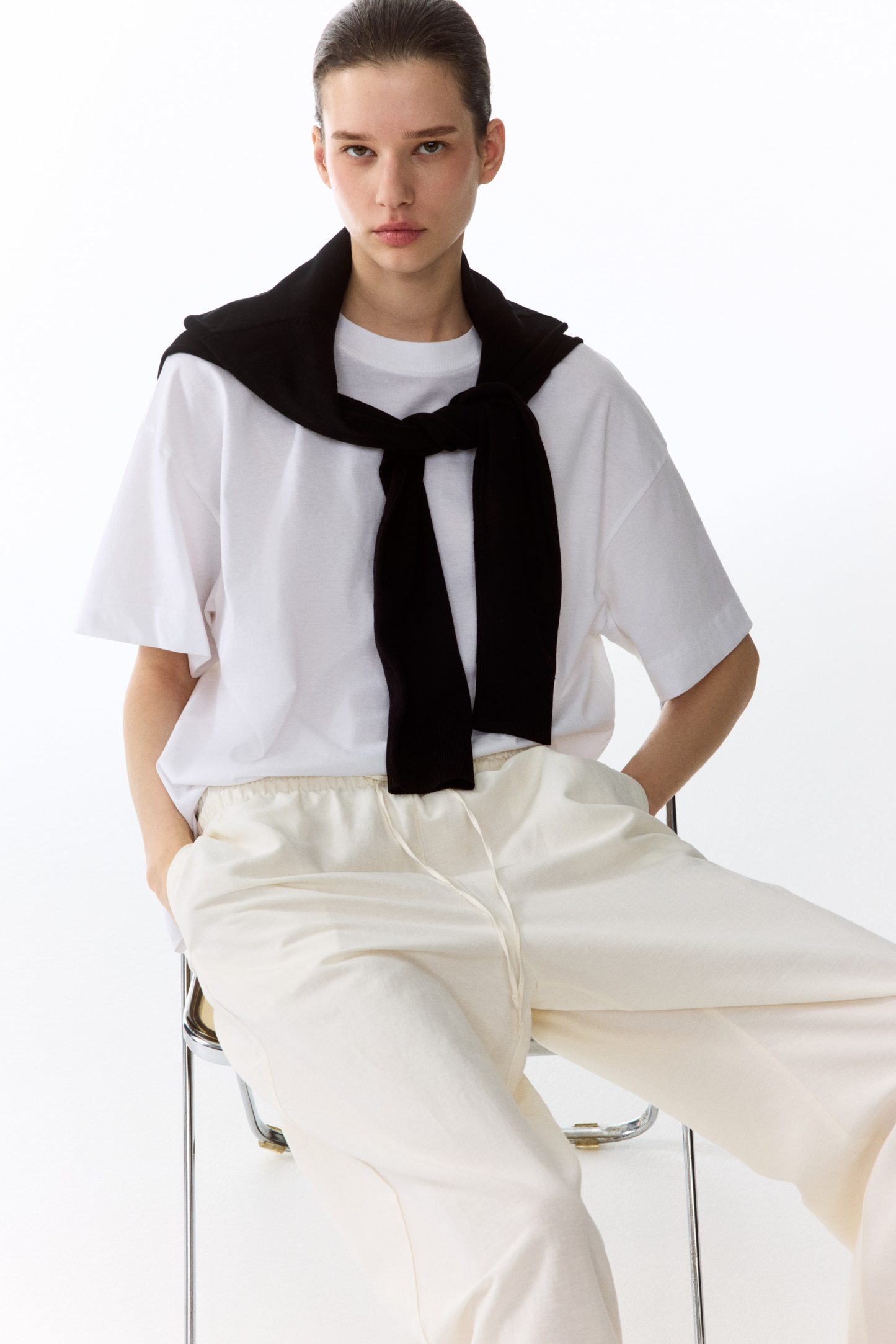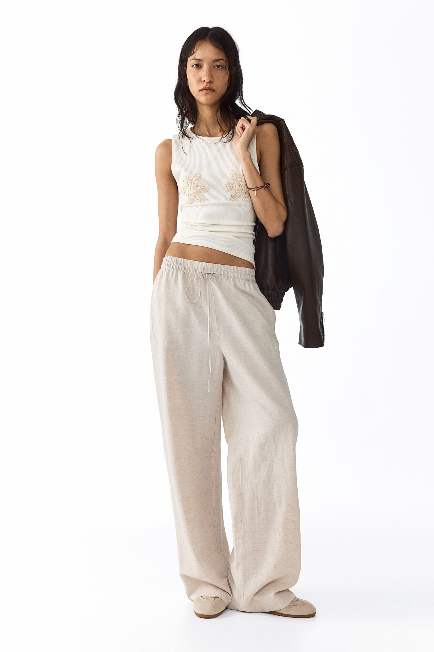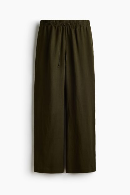 Loose-fit trousers in an airy weave made from a linen blend. High, elasticated waist with a narrow drawstring, discreet side pockets and straight legs.