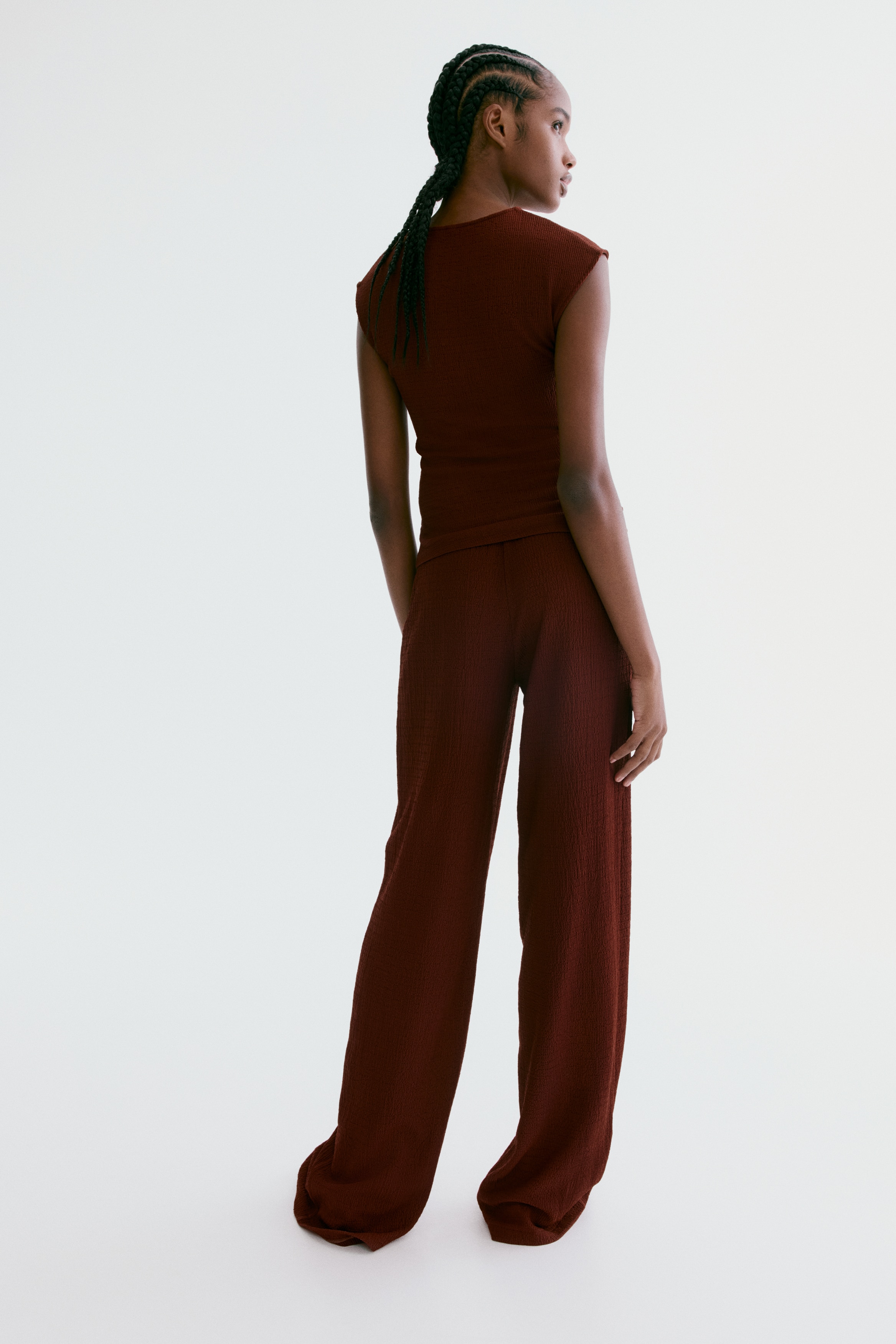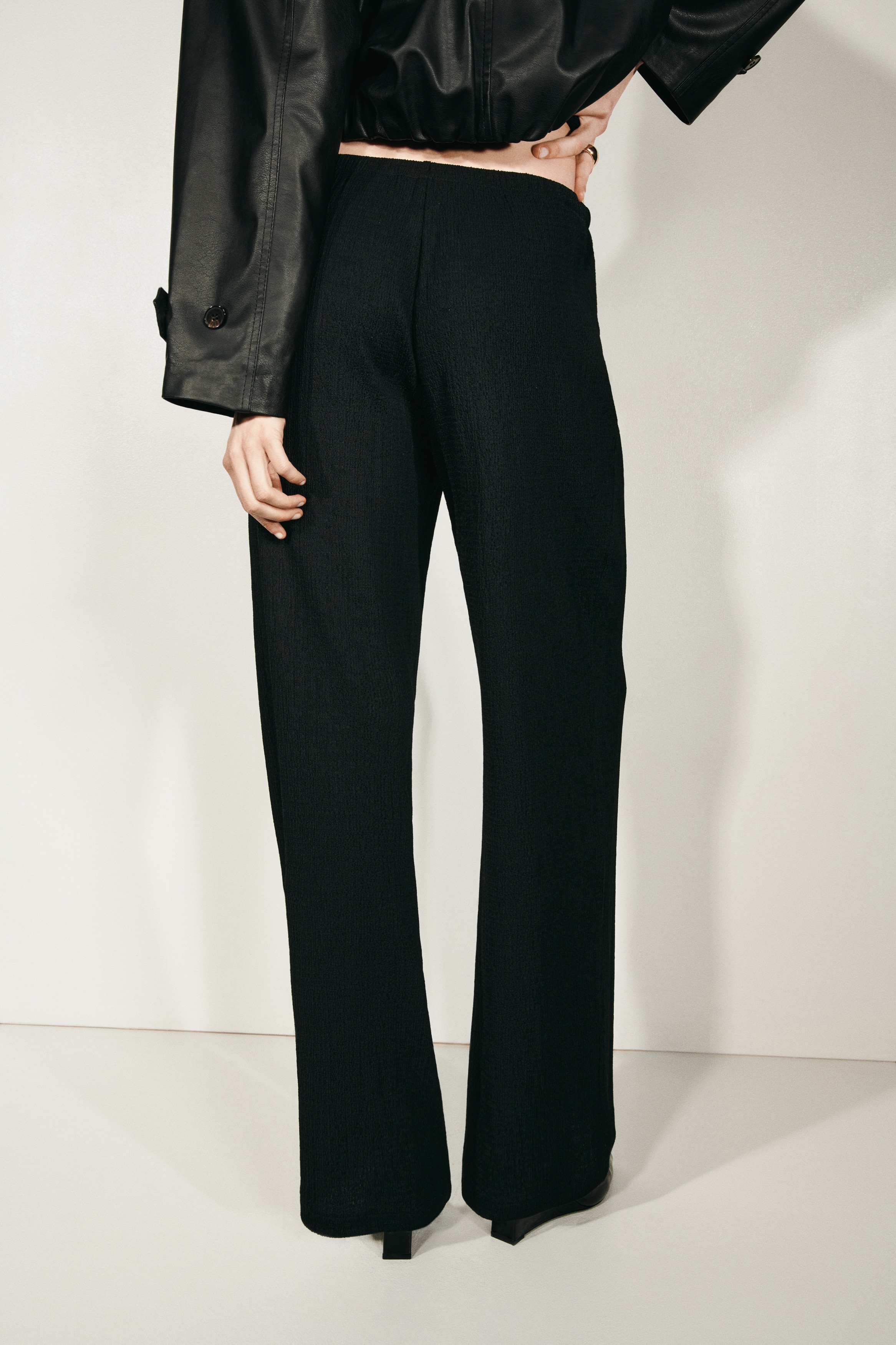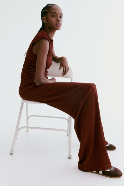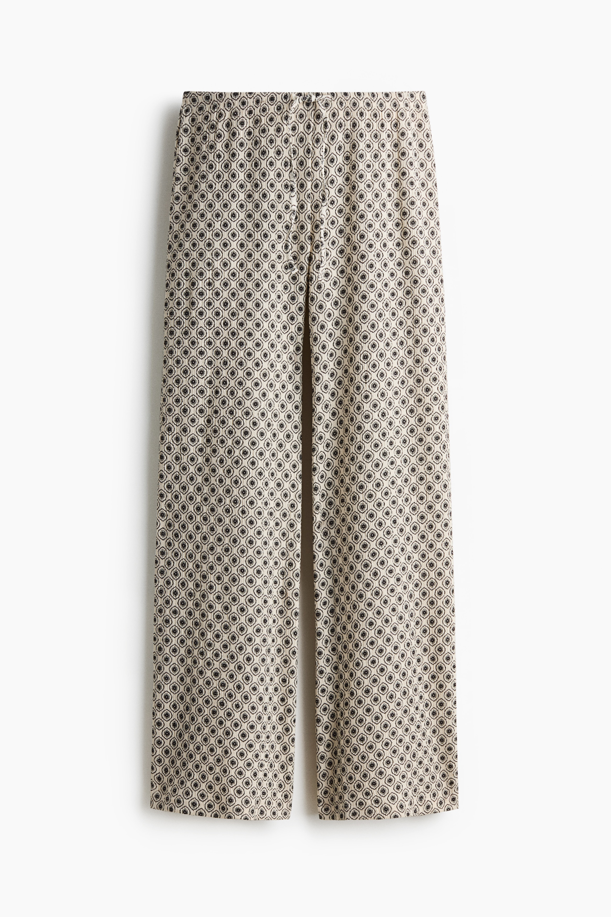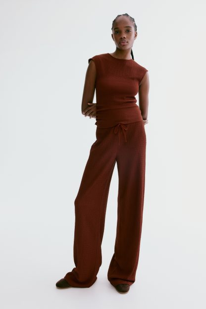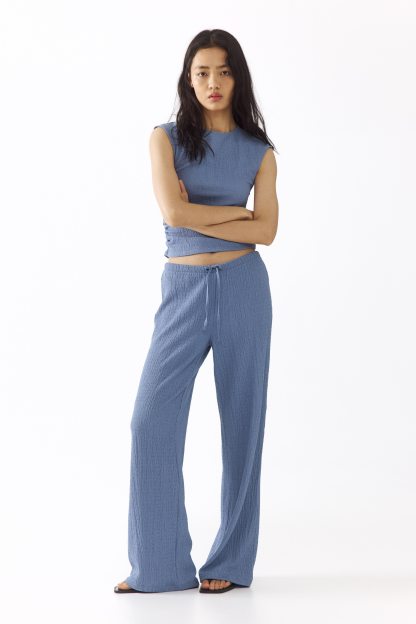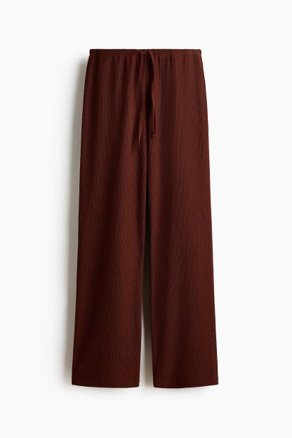 Trousers in textured jersey with an elasticated, drawstring waist and straight legs.