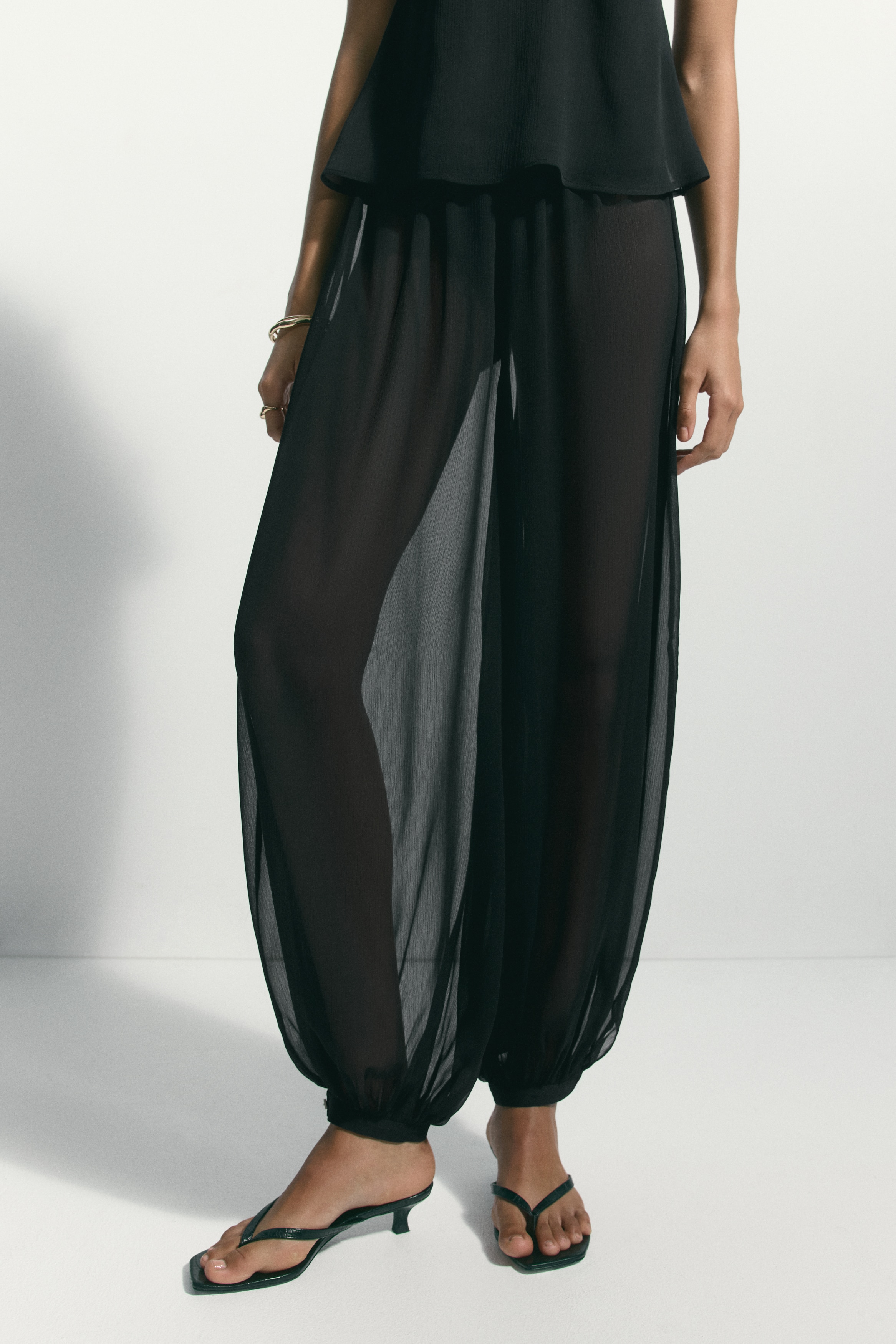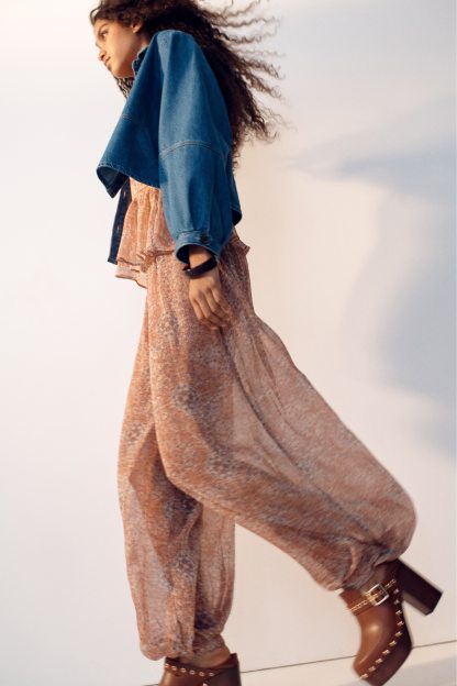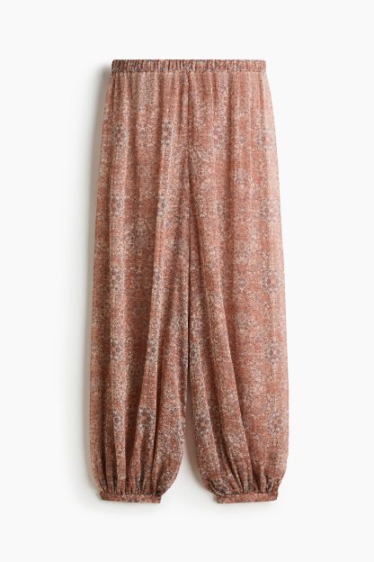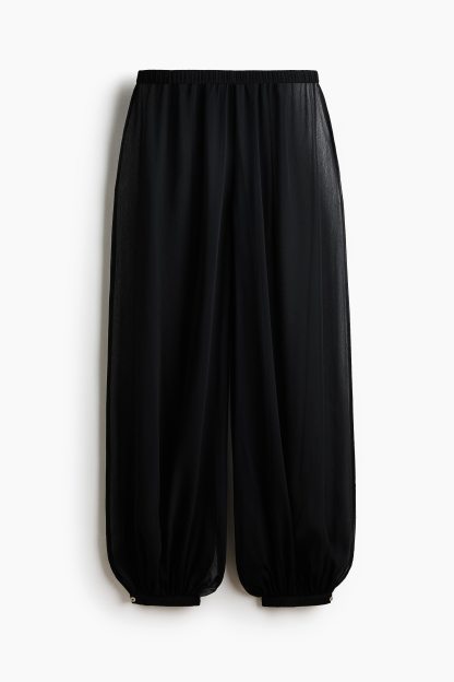 Trousers in woven fabric with an elasticated waist and balloon legs with elasticated hems.
