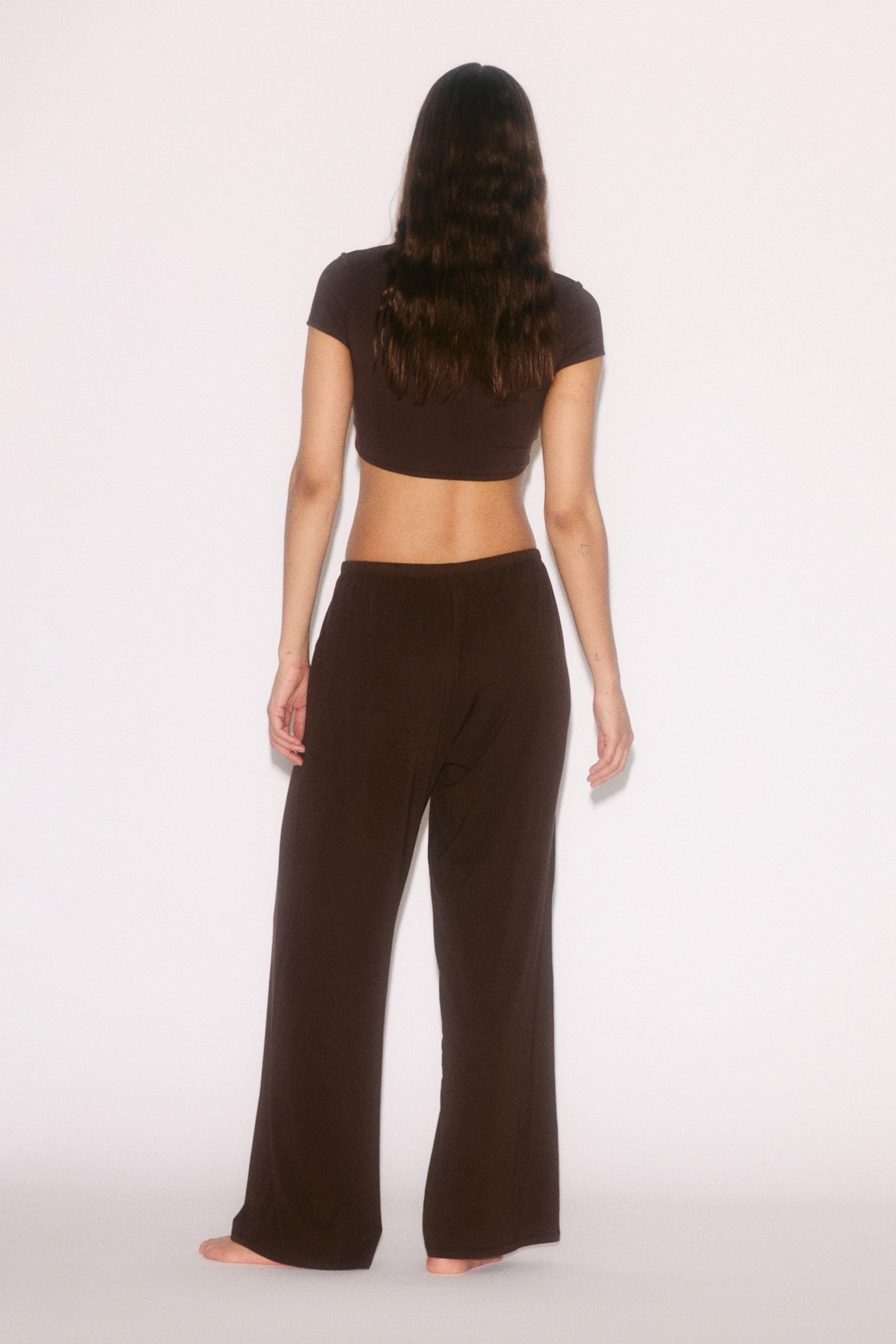 Relaxed-fit yoga pants in soft jersey made from a modal blend with a low, elasticated waist and wide legs.