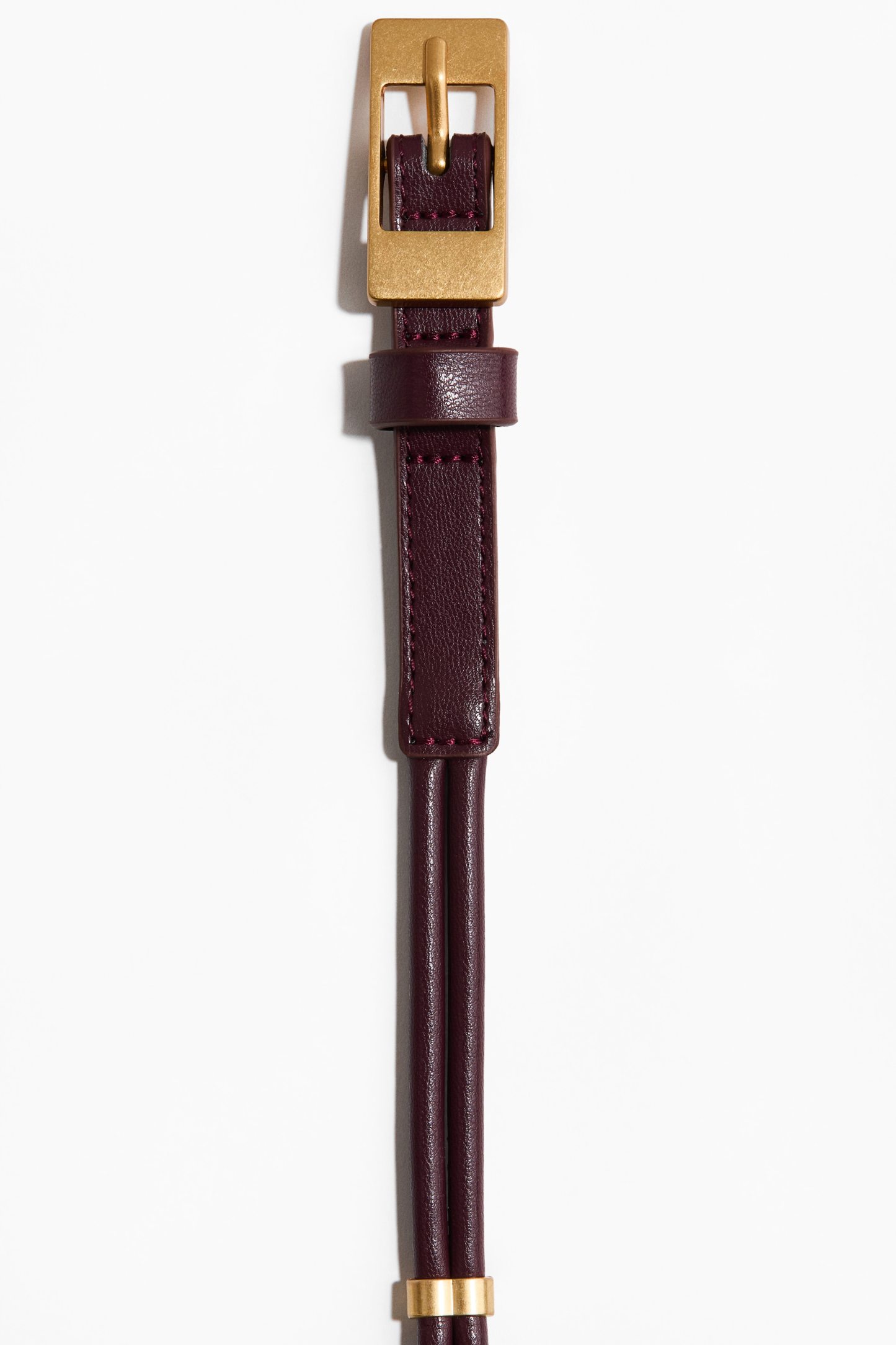 Double-strap belt in coated fabric with metal div all around and a rectangular metal buckle.